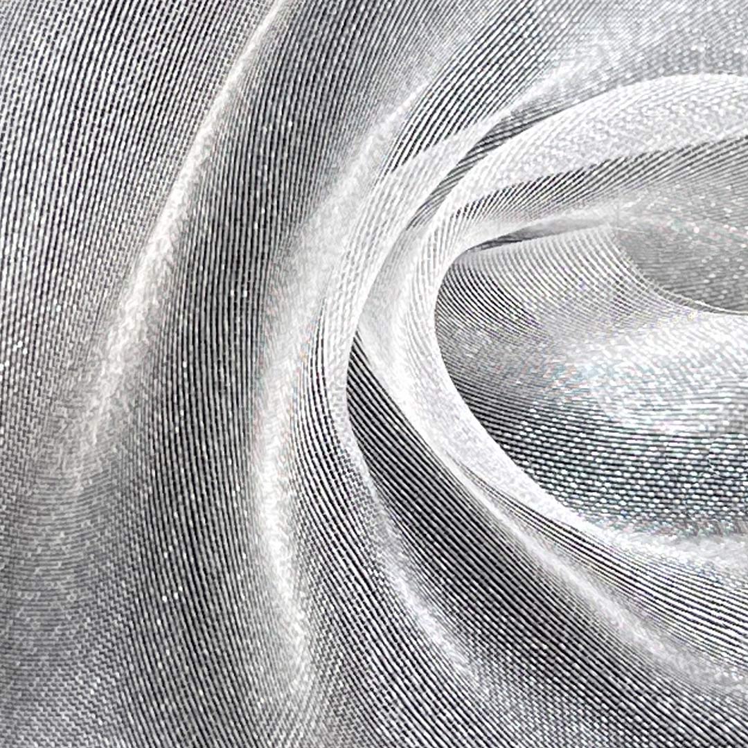 Crafted from 100% Polyester, our glossy translucent organza fabric is an exquisite choice for creating elegant dresses, theatrical costumes, and sophisticated blouses. This lightweight yet structured fabric features a delicate sheer quality with a distinct glossy finish that catches the light beautifully, adding depth and dimension to any design.