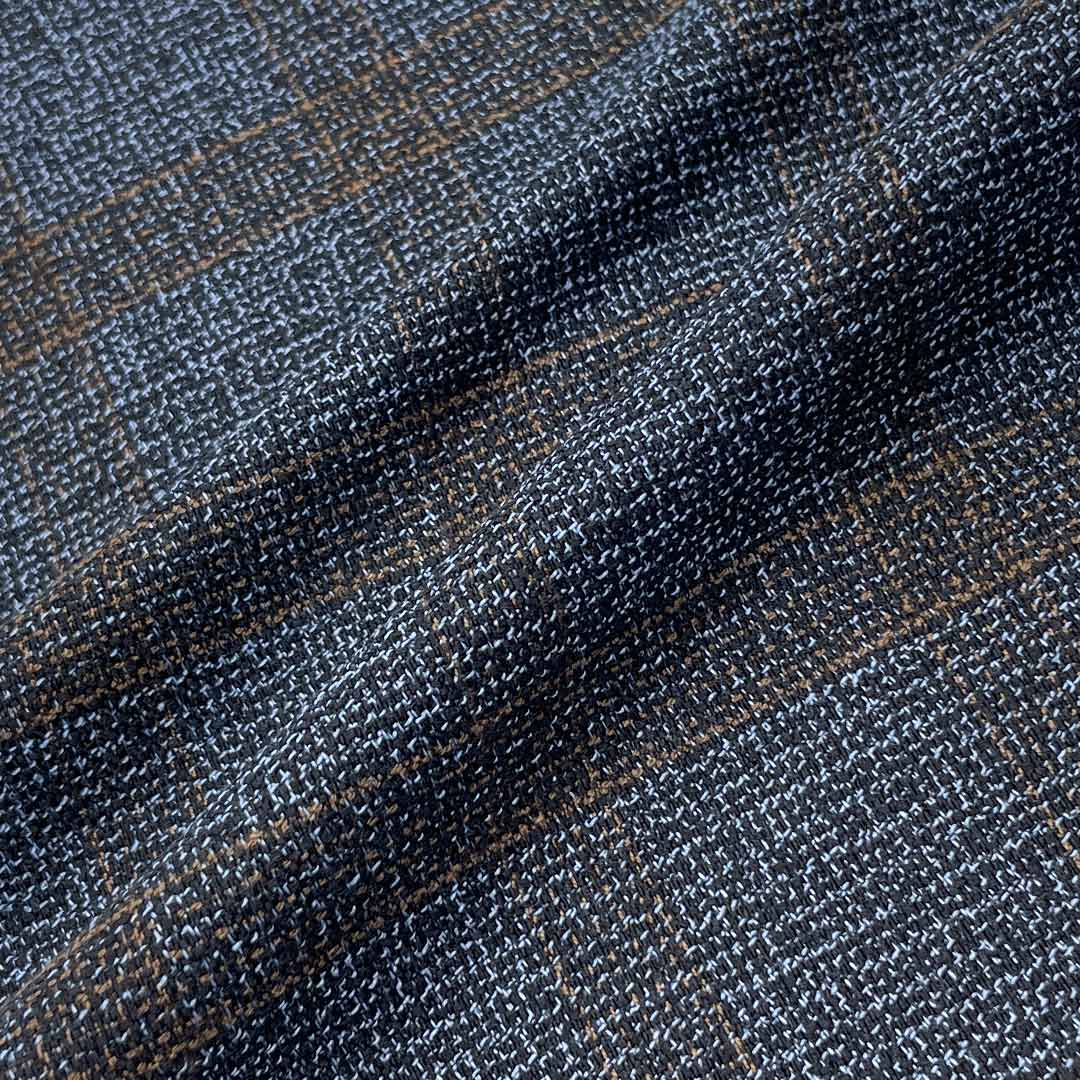 Weighing 300g/m (5.9oz), this distinguished and performance-oriented suiting fabric is engineered from a blend of 88% polyester, 10% viscose, and 2% spandex, delivering a distinctly crisp and authoritative hand feel complemented by a well-defined and appealing textured surface designed to provide both robust structural integrity and rich visual depth for professional attire that demands a sharp and confident appearance.
