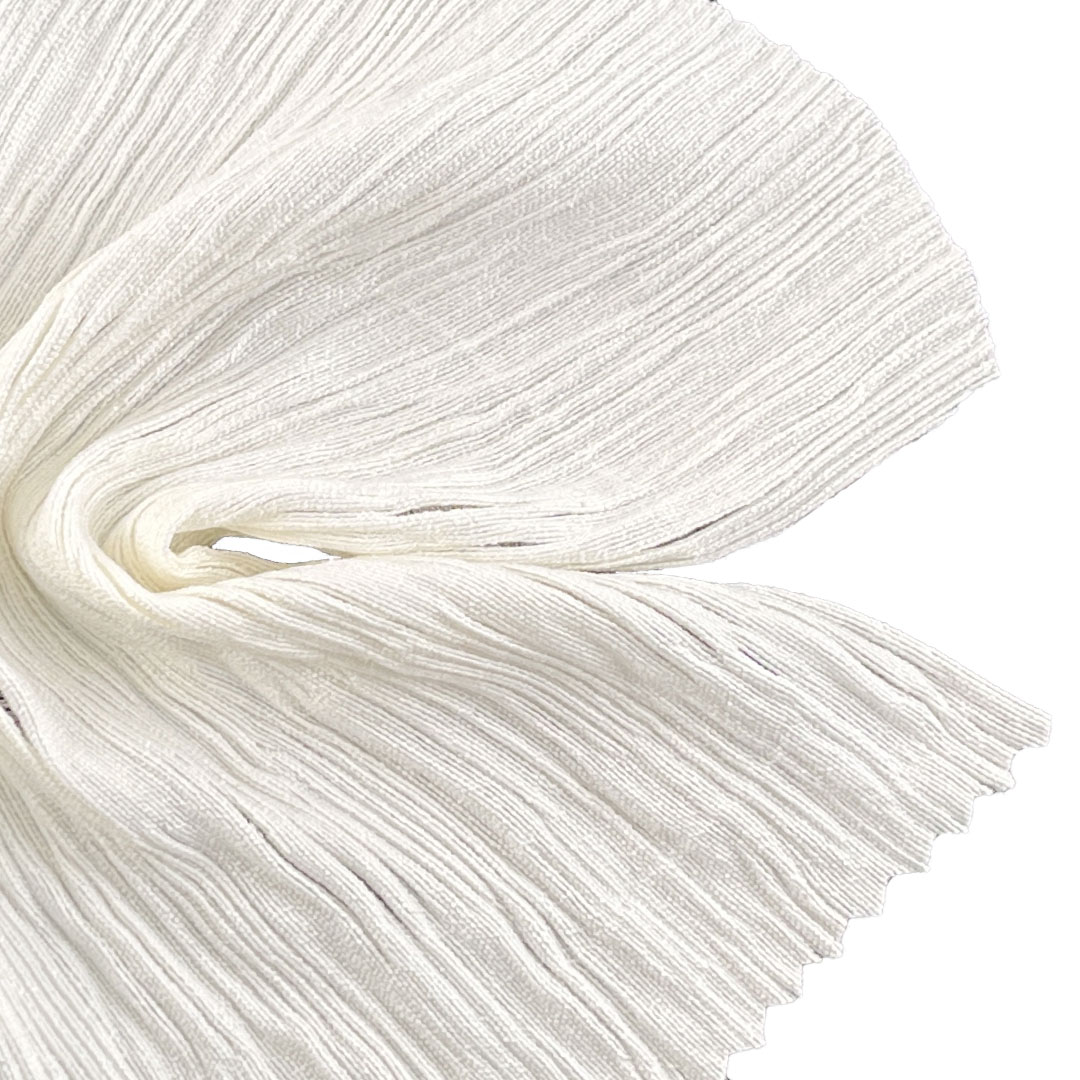Experience the sophisticated texture and contemporary elegance of our 100gsm plisse textile, expertly crafted from 80% Viscose and 20% Nylon. This innovative fabric features a distinctive crinkled texture that creates a visually captivating and tactilely rich surface, making it an ideal choice for both stylish skirts and stunning evening dresses. The viscose content ensures a soft, smooth hand feel, excellent drape, and breathability, while nylon adds durability, shape retention, and a polished finish that enhances the fabric's structured pleats.