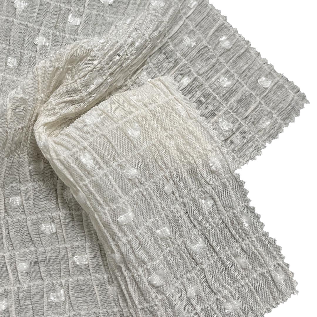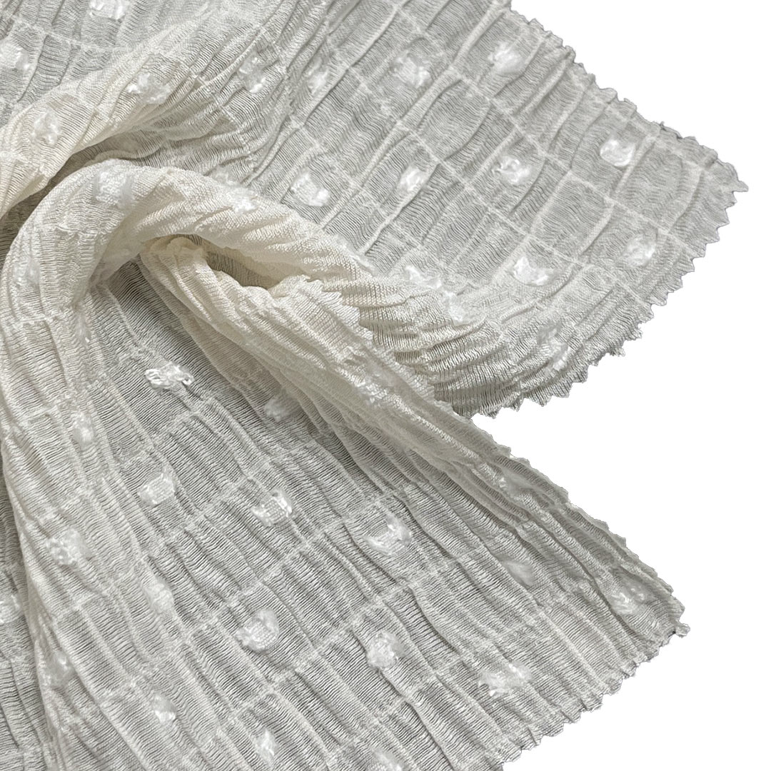 The crinkled surface lends an artistic, sculptural quality to garments, making it ideal for special occasions, stylish everyday outfits, or any setting where texture and elegance are paramount. Easy to care for and machine washable, this fabric retains its textured elegance and vibrant colors over time, requiring no ironing due to its intentional crinkled design.