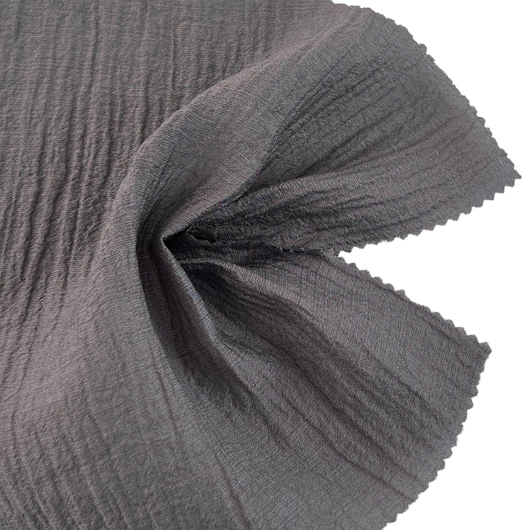 This fabric features intentional crinkling and carefully set pleats that produce a richly wrinkled surface with pronounced texture and dimensional depth. Rayon provides a soft, breathable base with excellent drape, while Tencel adds moisture-wicking properties and a smooth, refined hand feel. The delicate inclusion of Silk lends a subtle natural sheen and enhances the fabric's fluid movement. Weighing just 90gsm, this ultra-lightweight fabric floats effortlessly, making it ideal for ethereal dresses and skirts that capture light and motion. The crinkled texture not only adds visual and tactile interest but also gives each garment a unique, artisanal character. Unlike conventional smooth textiles, this intentionally textured fabric celebrates imperfection and organic beauty, making it perfect for bohemian, avant-garde, and contemporary designs.