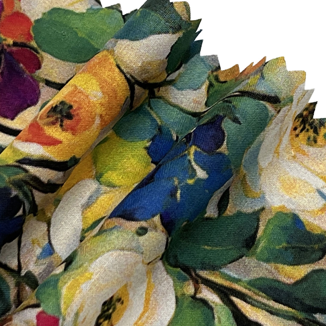 The all-cotton composition ensures excellent moisture absorption and quick-drying properties, keeping you cool and refreshed in warm climates. Its smooth, fine texture provides a soft hand feel while allowing lively prints to stand out with clarity and depth. Perfect for chic beach cover-ups, airy dresses, and polished shirts, this printed fabric moves with grace and offers adaptable wearability for a variety of occasions. The printed motifs, from tropical florals and botanical themes to geometric and abstract art, infuse each garment with personality and summery appeal.