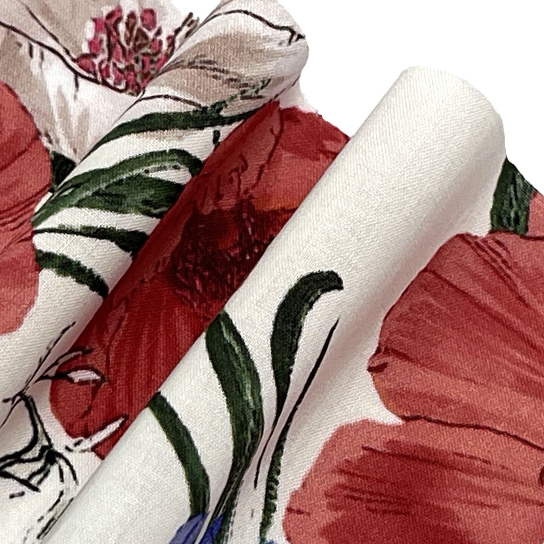 The all-cotton composition ensures excellent moisture absorption and quick-drying properties, keeping you cool and refreshed in warm climates. Its smooth, fine texture provides a soft hand feel while allowing lively prints to stand out with clarity and depth. Perfect for chic beach cover-ups, polished shirts, and airy dresses, this printed fabric moves with grace and offers adaptable wearability for a variety of occasions. The printed motifs, from tropical florals and botanical themes to geometric and abstract art, infuse each garment with personality and summery appeal.