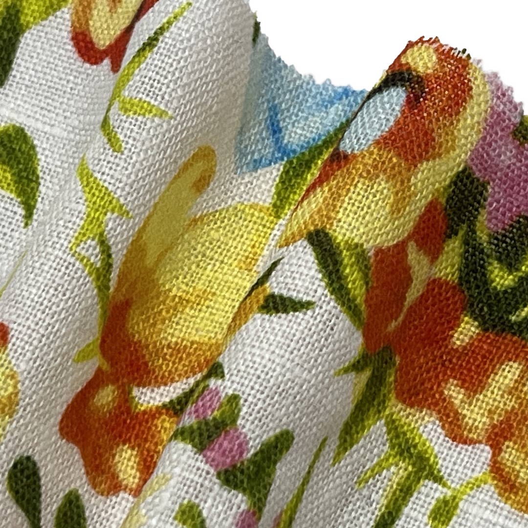 Perfect for sunny coastal outings, relaxed seasonal wear, and breezy everyday styles, this material drapes beautifully and feels airy against the skin, allowing for effortless movement and a comfortable fit. The pure linen composition ensures outstanding moisture-wicking properties and quick-drying capability, keeping you cool and comfortable in warm weather. The printed designs are colorfast and resist fading, maintaining their brightness even after exposure to sun, saltwater, and repeated washing.