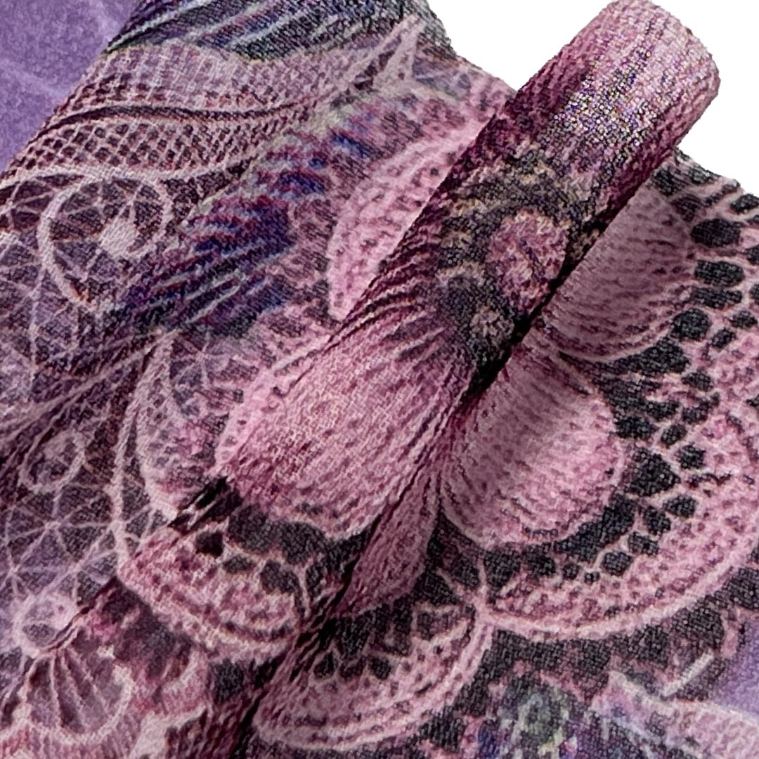 Weighing just 65gsm, this cloth drapes beautifully and feels almost weightless against the skin, allowing for effortless movement and a comfortable fit. The printed designs are colorfast and resist fading, maintaining their brightness and clarity over time. Easy to care for and machine washable, this printed fabric retains its soft texture, vibrant colors, and structural integrity through regular use.