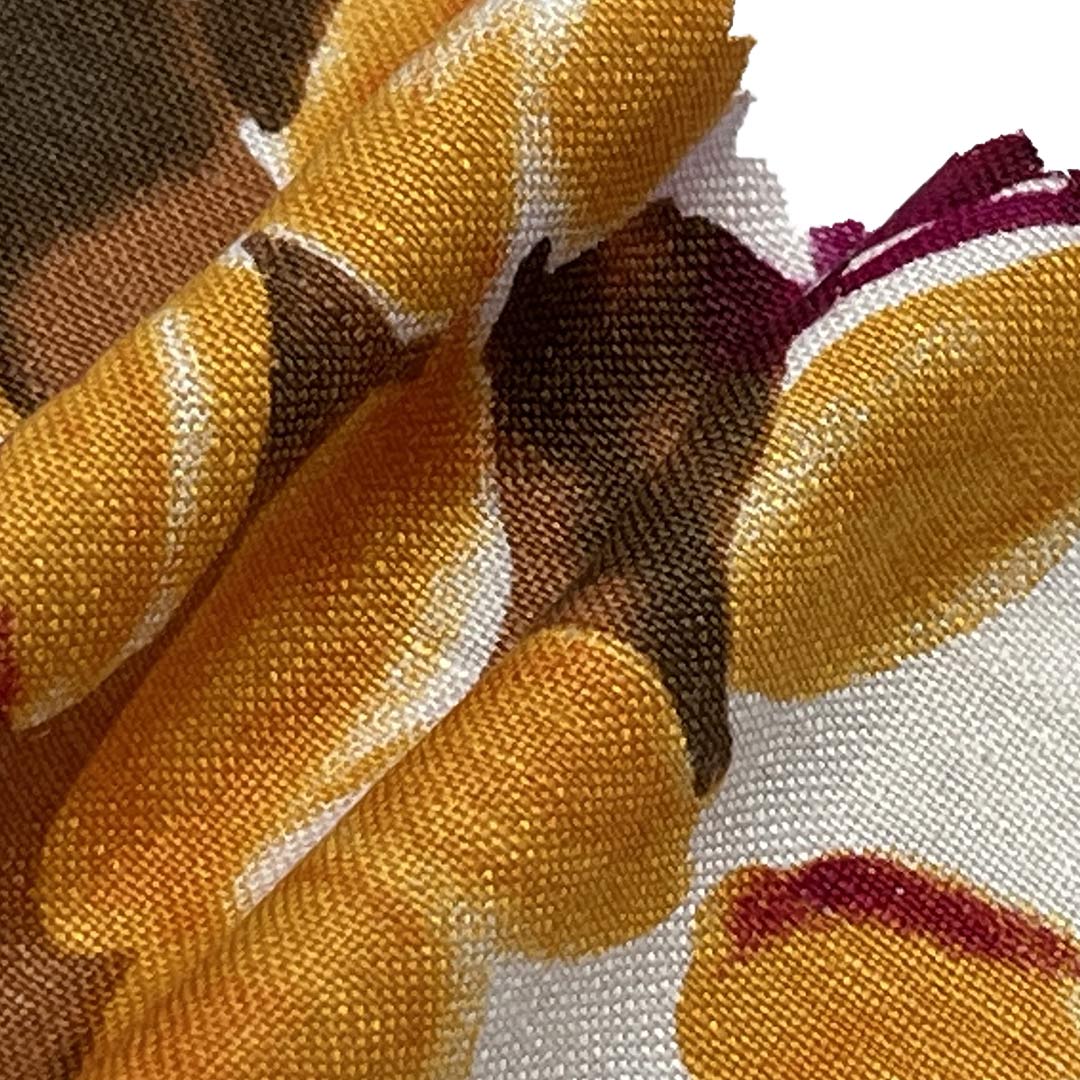 Weighing a comfortable light-to-medium density, this material drapes beautifully and feels airy against the skin, allowing for effortless movement and a flattering fit. The natural fiber composition ensures exceptional breathability and moisture-wicking capabilities, keeping you cool and comfortable in warm weather. The printed designs are colorfast and resist fading, maintaining their brightness even after exposure to sun, saltwater, and repeated washing.