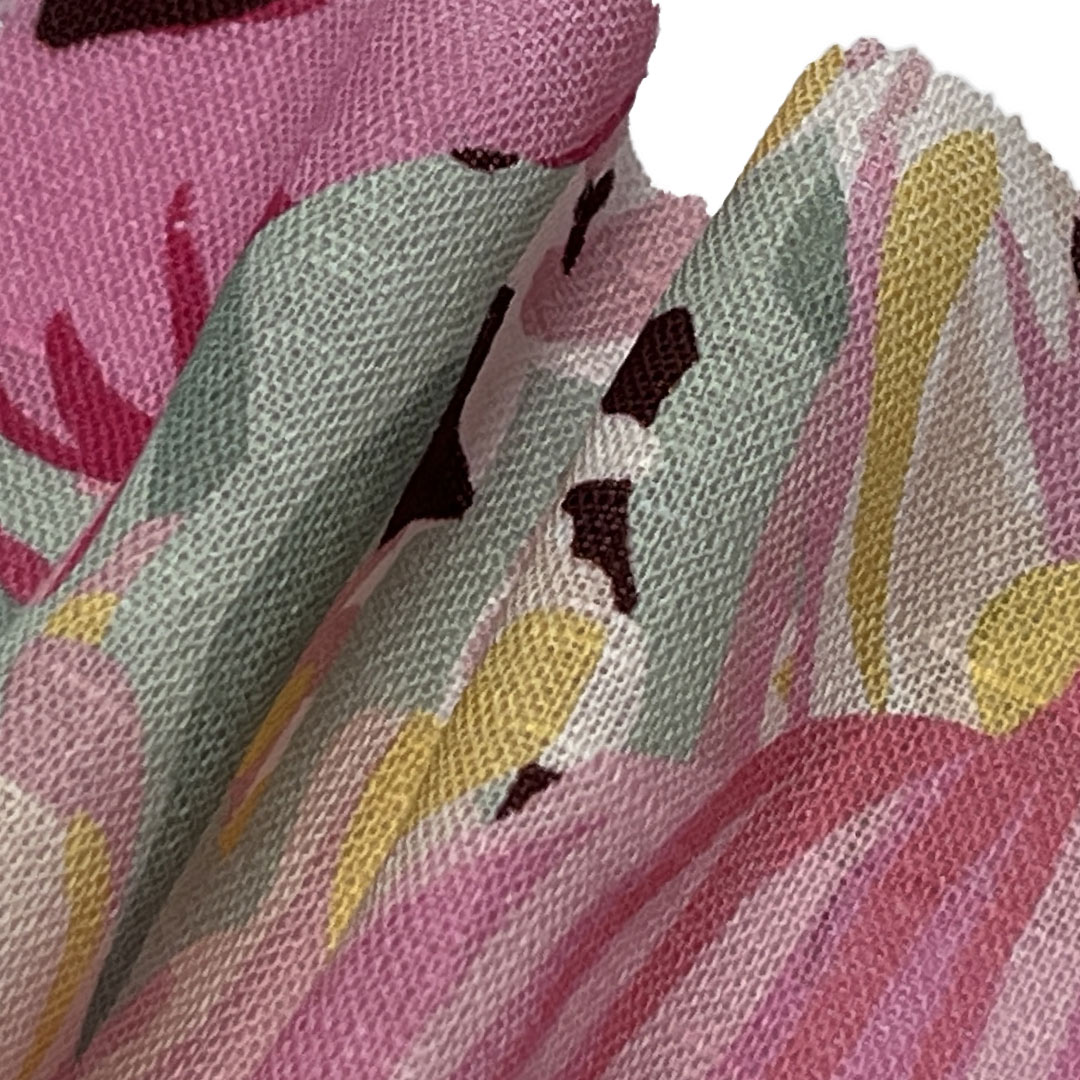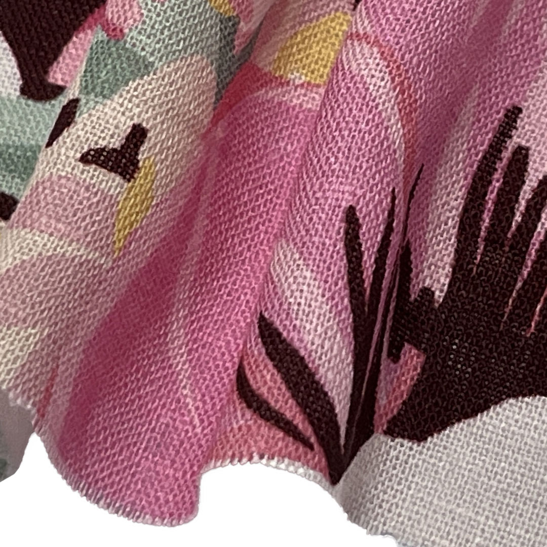The printed designs are colorfast and resist fading, maintaining their brightness even after exposure to sun, saltwater, and repeated washing. Easy to care for and machine washable, this printed fabric retains its textured feel, vibrant colors, and structural integrity over time. Whether designing breezy dresses for summer occasions or trendy beachwear for seaside adventures, this versatile textile delivers the perfect combination of natural comfort, laid-back style, and practical performance for warm-weather apparel.