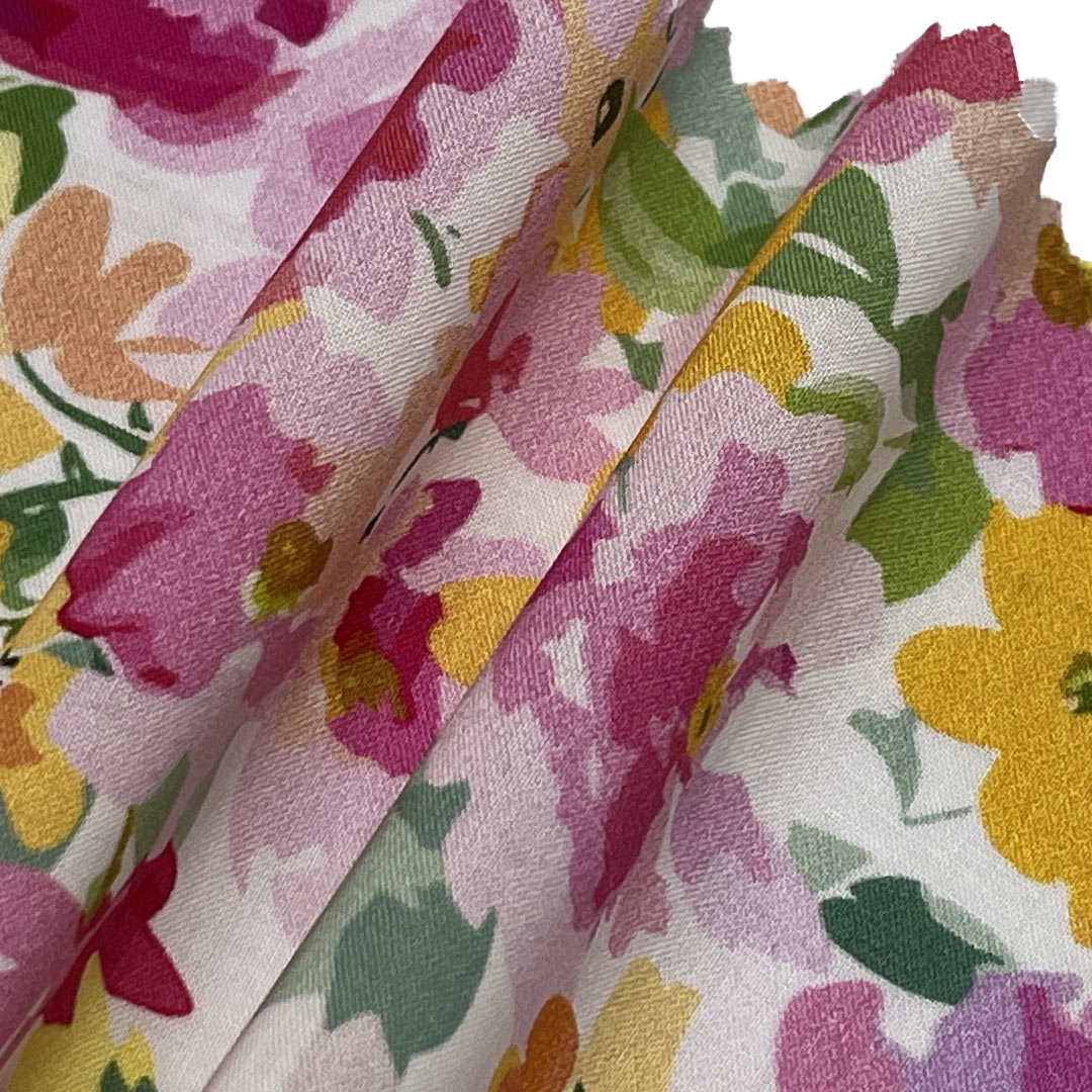 Weighing just 85gsm, this fabric drapes gracefully and feels soft against the skin, providing ease of movement and a flattering fit for flowing dresses, stylish beach cover-ups, and casual shirts. The printed designs are carefully applied to preserve the fabric's natural texture and flexibility, allowing it to adapt beautifully to the body's contours. Perfect for creating elegant dresses for summer occasions, chic beachwear for seaside escapes, or breezy shirts for everyday outings, this fabric blends visual appeal with everyday comfort.