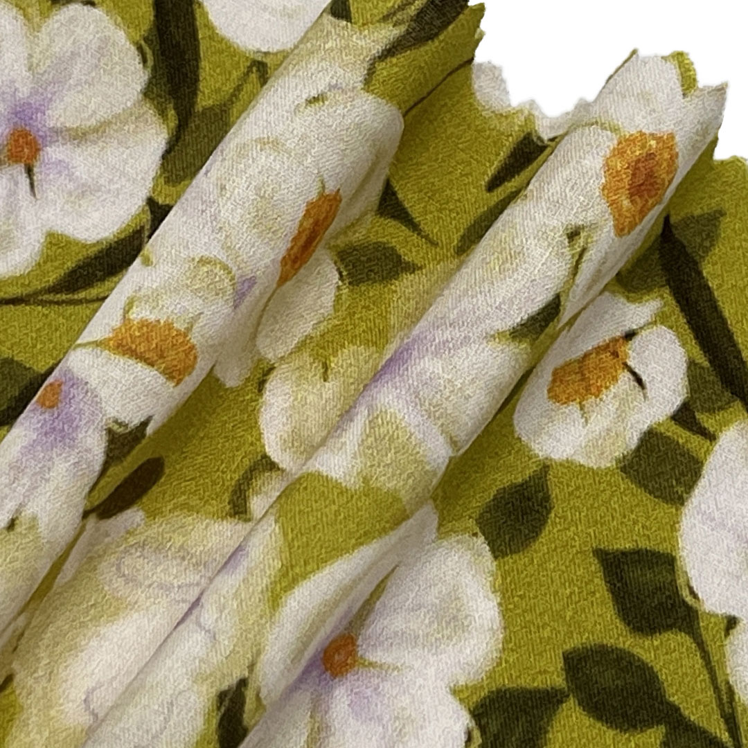 The addition of polyamide enhances the fabric's strength, elasticity, and shape retention. Weighing just 90gsm, this fabric offers exceptional lightness and a delicate drape, making it ideal for garments that flow gracefully and feel almost weightless against the skin. The lively printed patterns capture the essence of summer and coastal living, adding vibrant personality to each design. Perfect for chic beach cover-ups and polished shirts, this fabric moves with ease and offers effortless versatility.