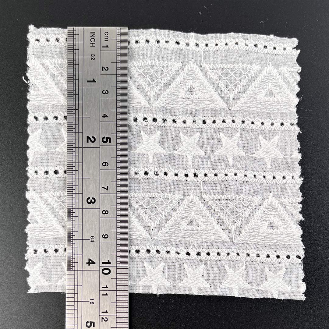 Crafted entirely from 100% premium cotton, this elegant eyelet fabric showcases the artistic technique of exquisite water-soluble embroidery fabric, where openwork patterns transition in depth and density to create a visually dynamic and tactilely rich texture that enhances both breathability and aesthetic appeal. The pure cotton composition ensures unparalleled softness, superior moisture-wicking performance, and gentle comfort against the skin, making it an ideal choice for sensitive wearers and extended daily use.