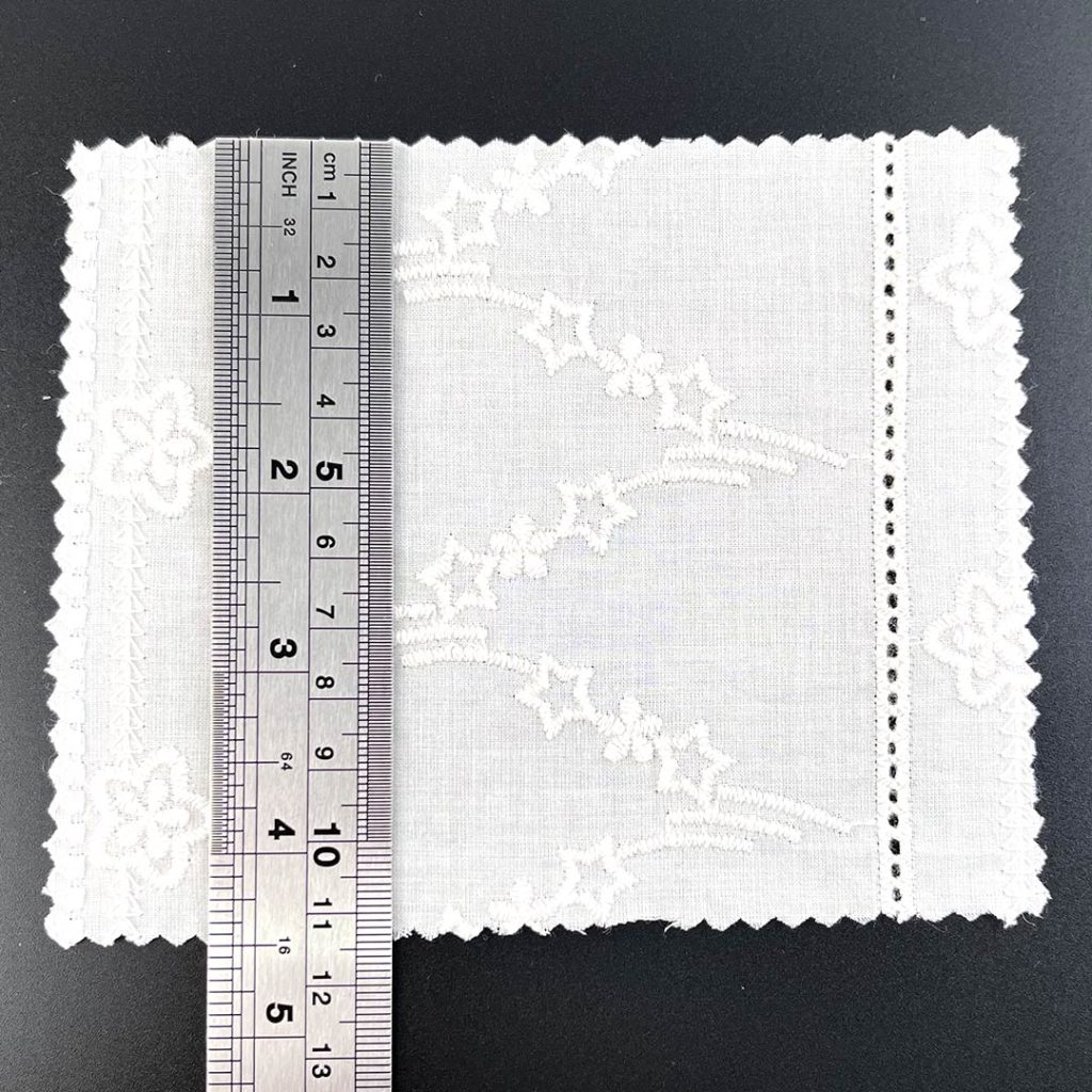 With its Soft Cotton Fabric hand feel, the material provides gentle contact against the skin, while the natural drape of high-quality cotton allows each garment to move gracefully with the wearer's form. The eyelet embroidery introduces a Delicate Embroidered Fabric elegance, making the fabric versatile enough for both casual daytime wear and refined evening attire. Whether used as Fashion Embroidered Cloth for modern tops, as Floral Embroidered Fabric for feminine dresses, or as Bridal Lace Fabric for special occasions, this Eco-Friendly Cotton Textile aligns seamlessly with sustainable fashion values thanks to its biodegradable, natural composition.
