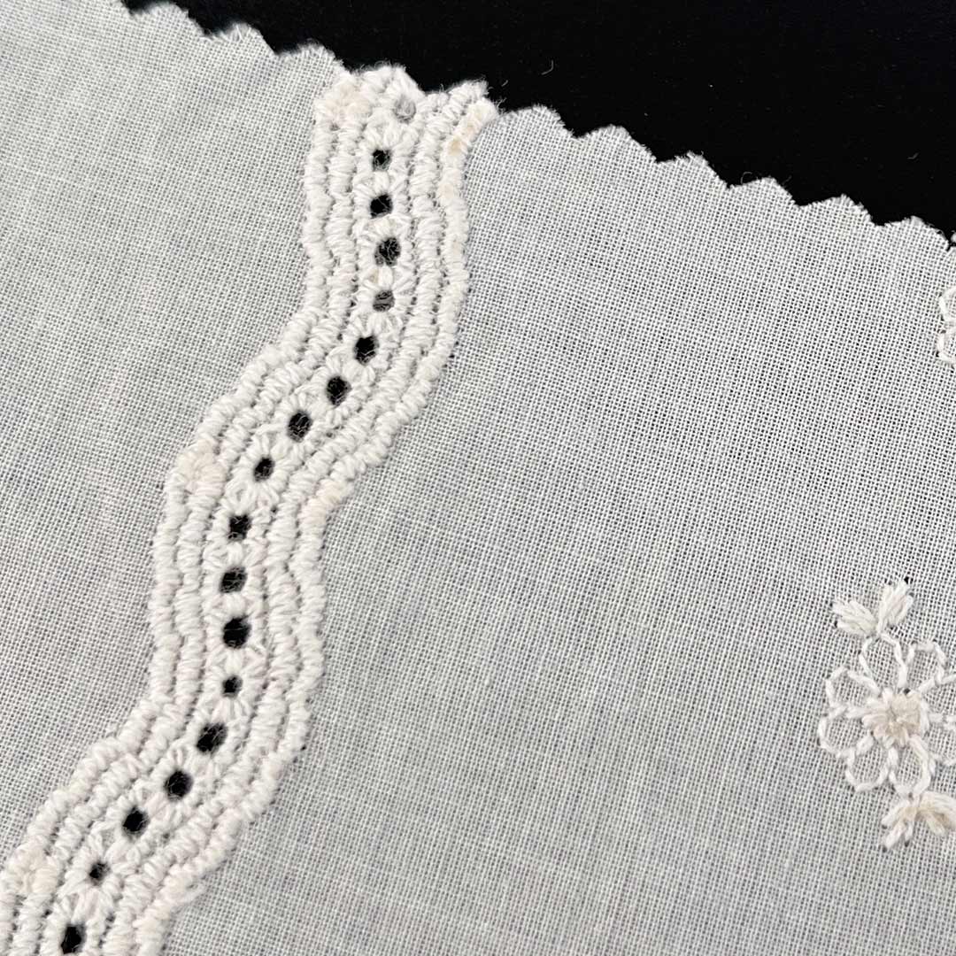 This versatile textile also excels as Cotton Dress Material for flowing skirts, as Lingerie Lace Material for delicate undergarments, and as a Customizable Embroidered Textile for bespoke design projects. Designed for long-lasting durability, this Washable Cotton Fabric retains its structural integrity, vibrant colors, and intricate embroidered details through repeated laundering, supported by Colorfast Cotton Material properties that effectively resist fading and maintain visual appeal over time. The Sheer Embroidered Lace quality lends an ethereal lightness to lightweight designs, while its Vintage Embroidered Lace aesthetic appeals to enthusiasts of timeless style.