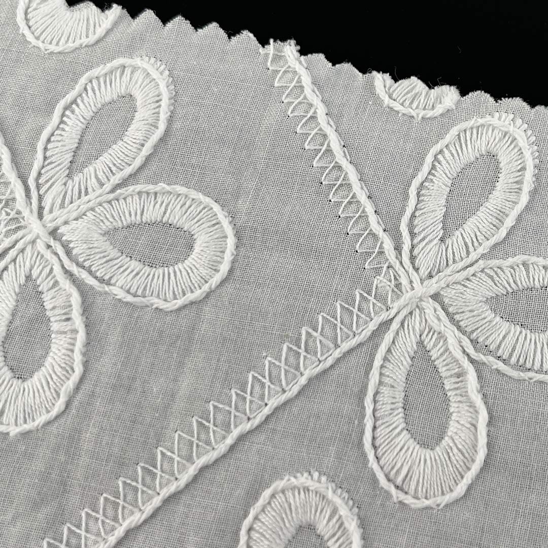 This versatile textile also excels as Cotton Dress Material for flowing skirts, as Lingerie Lace Material for delicate undergarments, and as a Customizable Embroidered Textile for bespoke design projects. Engineered for enduring quality, this Washable Cotton Fabric retains its structural integrity, vibrant colors, and intricate embroidered details through repeated laundering, bolstered by Colorfast Cotton Material properties that effectively resist fading and maintain aesthetic appeal over time. The Sheer Embroidered Lace quality imparts an ethereal lightness to lightweight designs, while its Vintage Embroidered Lace aesthetic resonates with enthusiasts of timeless style.
