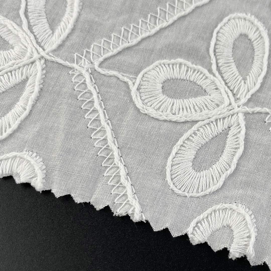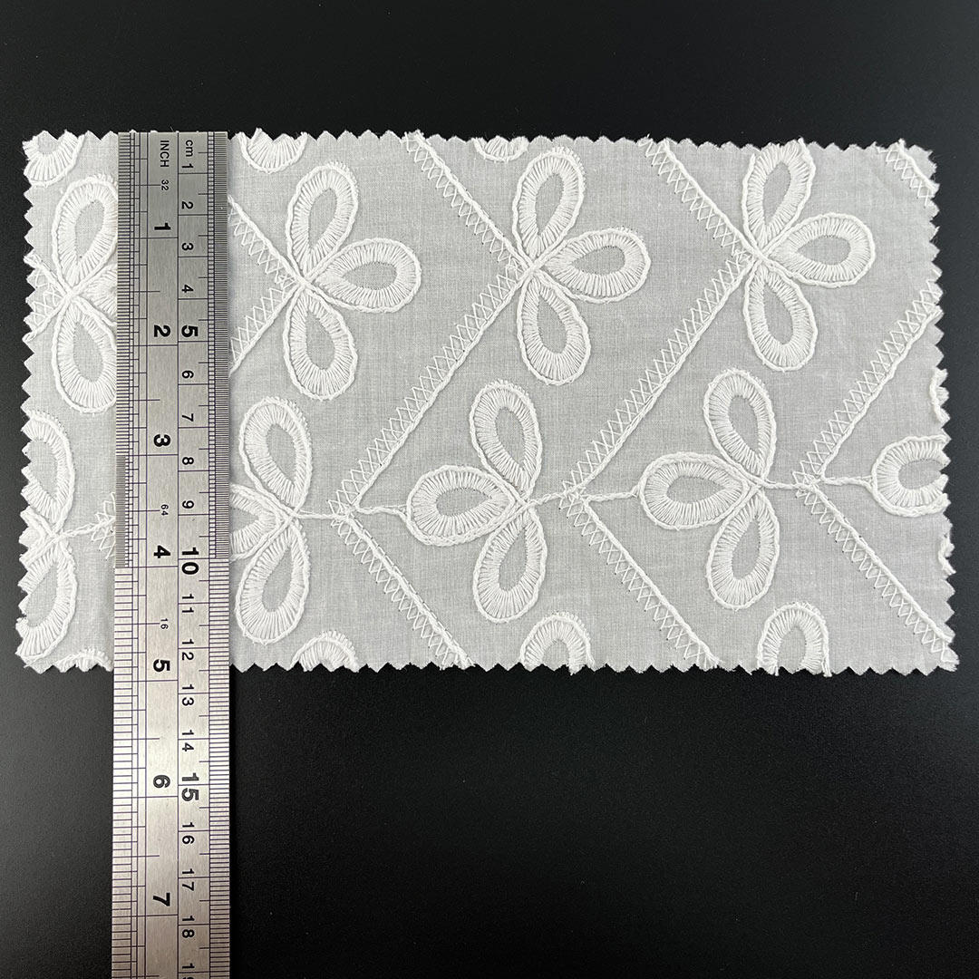 Boasting a luxuriously Soft Cotton Fabric hand feel and natural moisture-wicking properties, this material provides gentle, comfortable contact against the skin, while the natural drape of high-quality cotton allows each garment to move fluidly and elegantly with the wearer's form. The eyelet embroidery introduces a Delicate Embroidered Fabric sophistication, rendering the fabric adaptable for everything from casual daytime ensembles to refined evening attire. Whether utilized as Fashion Embroidered Cloth for contemporary Tops, as Floral Embroidered Fabric for feminine dresses, or as Bridal Lace Fabric for special occasions, this Eco-Friendly Cotton Textile seamlessly aligns with sustainable fashion values through its biodegradable, naturally sourced composition.