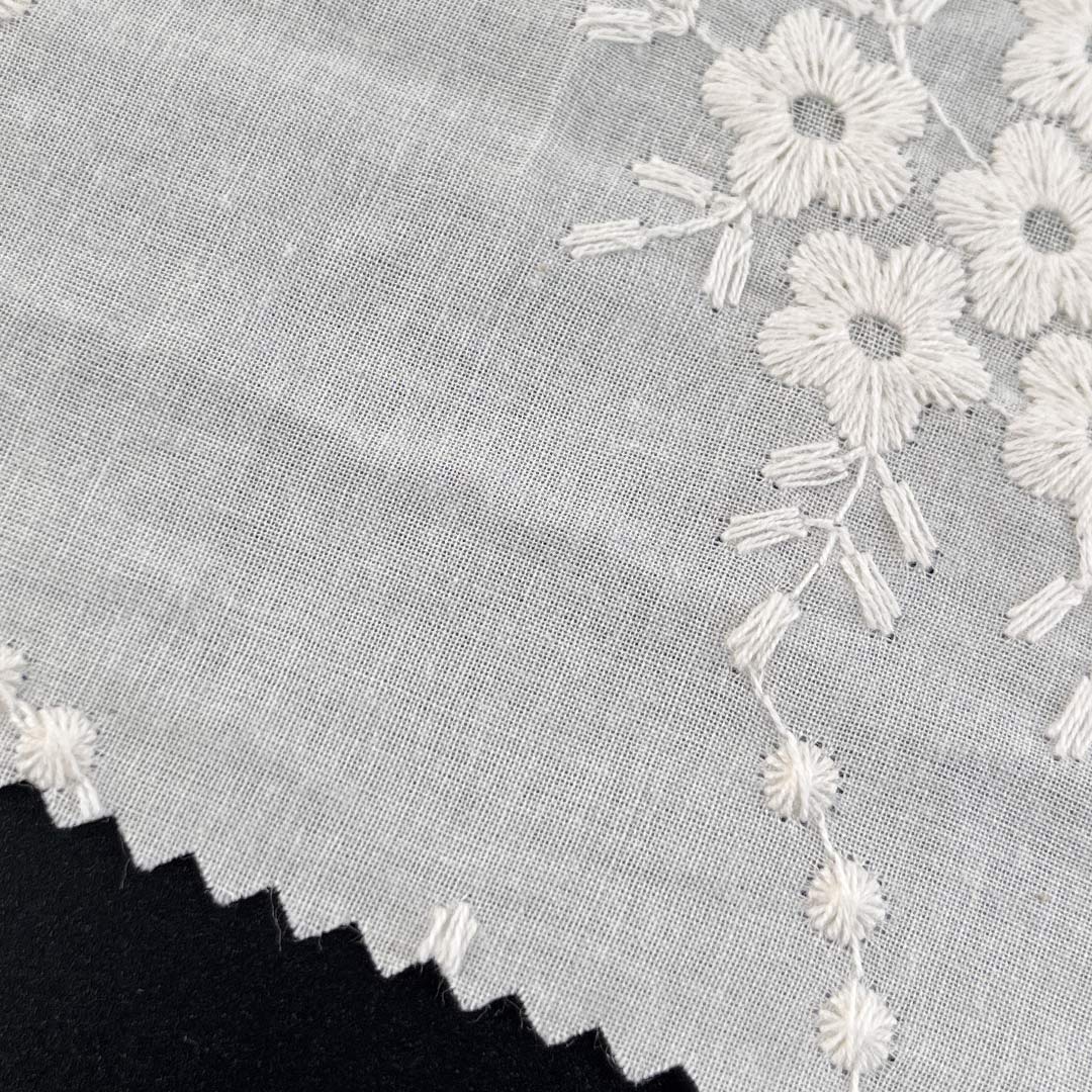 With its luxuriously Soft Cotton Fabric hand feel and natural moisture-wicking properties, this material provides gentle, comfortable contact against the skin, while the inherent drape of high-quality cotton allows each garment to move fluidly and elegantly with the wearer’s form. The eyelet embroidery introduces a Delicate Embroidered Fabric sophistication, making the fabric adaptable for everything from casual daytime outfits to refined evening ensembles. Whether used as Fashion Embroidered Cloth for contemporary Tops, as Floral Embroidered Fabric for feminine dresses, or as Bridal Lace Fabric for special occasions, this Eco-Friendly Cotton Textile seamlessly aligns with sustainable fashion values through its biodegradable, naturally sourced composition.