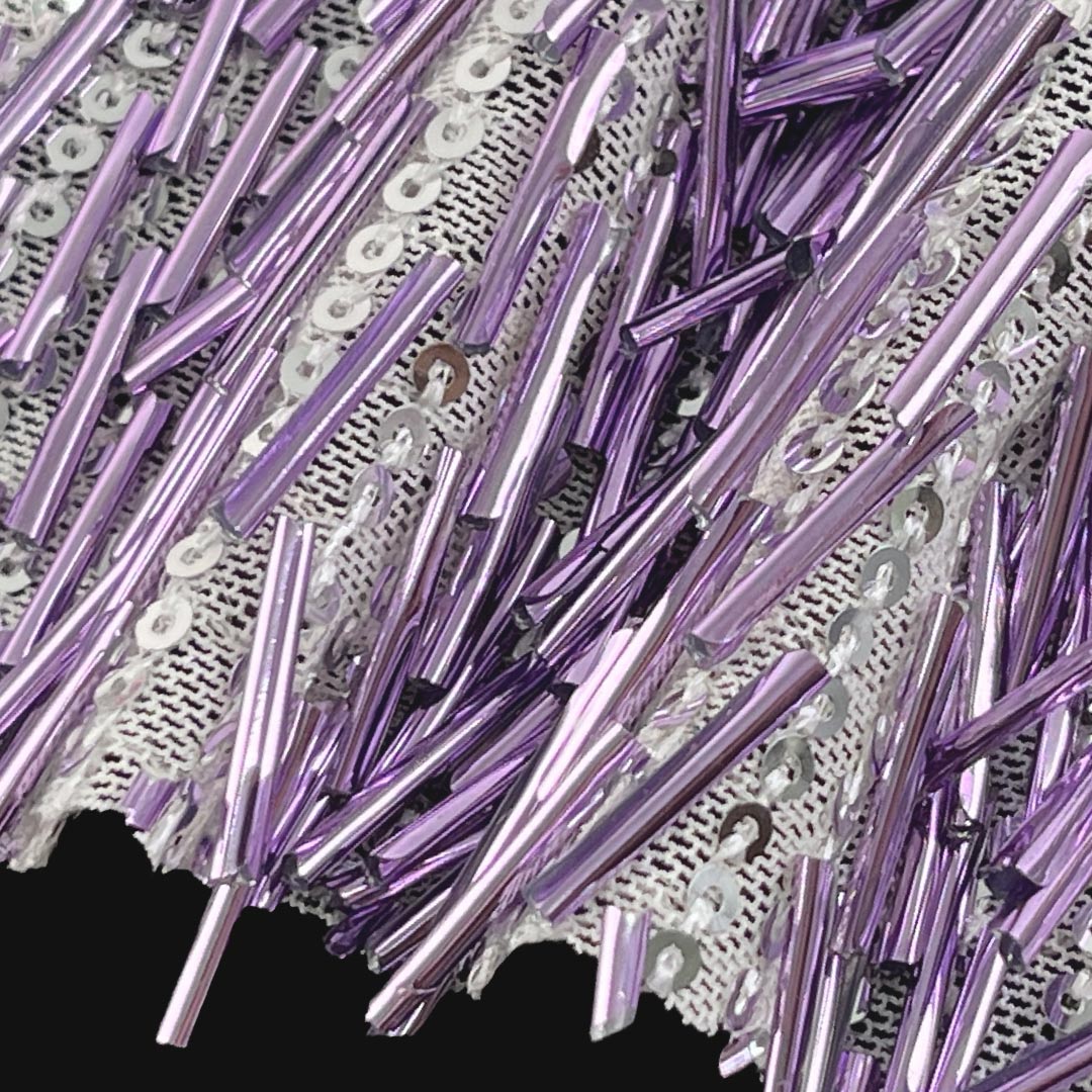 Polyester ensures the beads remain securely attached while providing a durable, easy-to-handle base that maintains its shape and visual appeal over time. The shiny surface adds a luminous quality and textural depth, making each creation visually engaging and pleasantly tactile. Sparkling imagination inspires creativity. Weighing lightly yet rich in embellished detail, this fabric is perfect for craft projects that benefit from a touch of glamour and dresses that call for understated yet striking decoration.