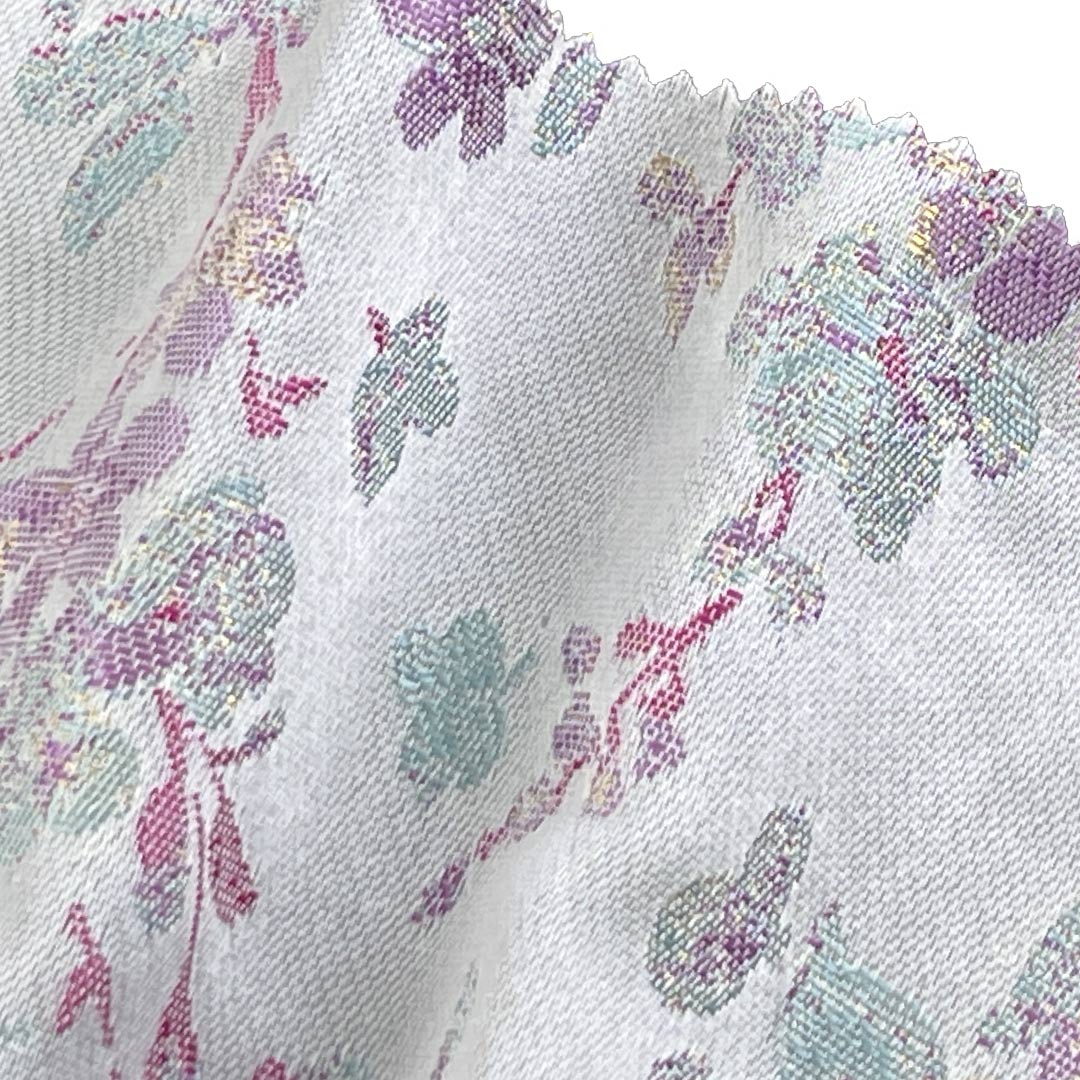 Ideal for bed runners that add opulence to home decor and evening gowns that demand grandeur and resilience, this fabric ensures vibrant color retention, wrinkle resistance, and easy maintenance. The glossy sheen of the brocade catches light beautifully, highlighting its detailed motifs, while the crisp texture provides a polished, high-end finish. Weighing with substantial body yet remaining flexible, this fabric drapes elegantly and holds its shape impeccably.