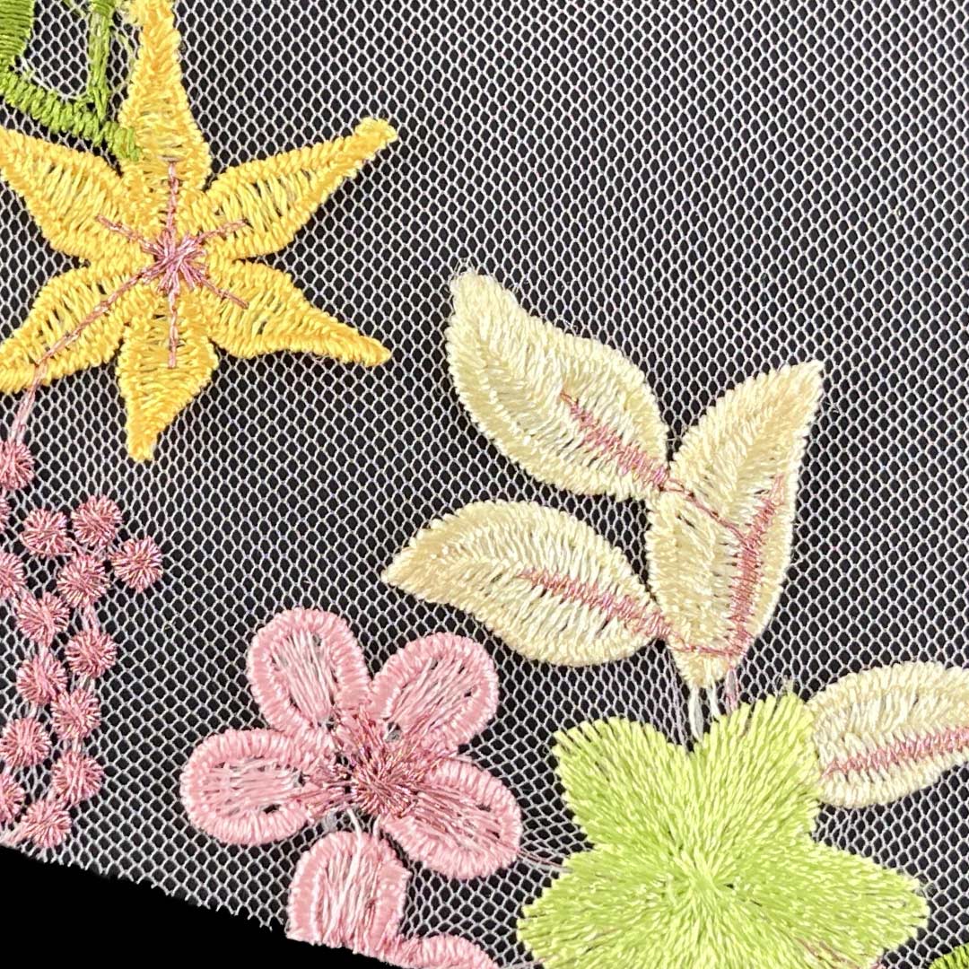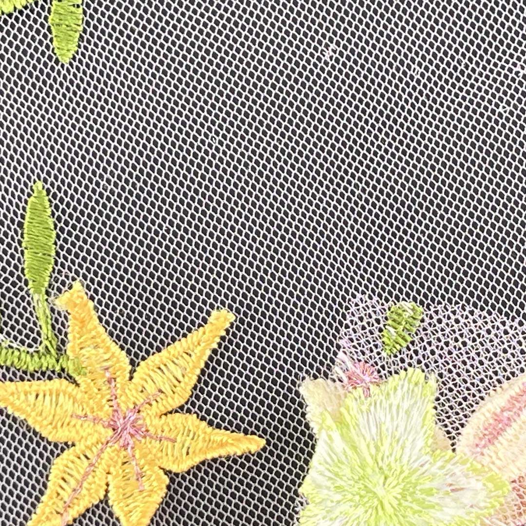 The embroidered motifs are carefully stitched to enhance the fabric's texture, providing a sophisticated, dimensional effect that catches the light and draws the eye. With a structured yet flexible drape, this fabric moves gracefully in garments and lays beautifully on surfaces, perfect for creating show-stopping evening gowns for galas and elegant table runners for festive gatherings. The textured embroidery not only elevates the aesthetic appeal but also adds a layer of luxury and craftsmanship to each piece. Easy to care for and machine washable, this fabric maintains its intricate details, vibrant colors, and refined appearance over time.