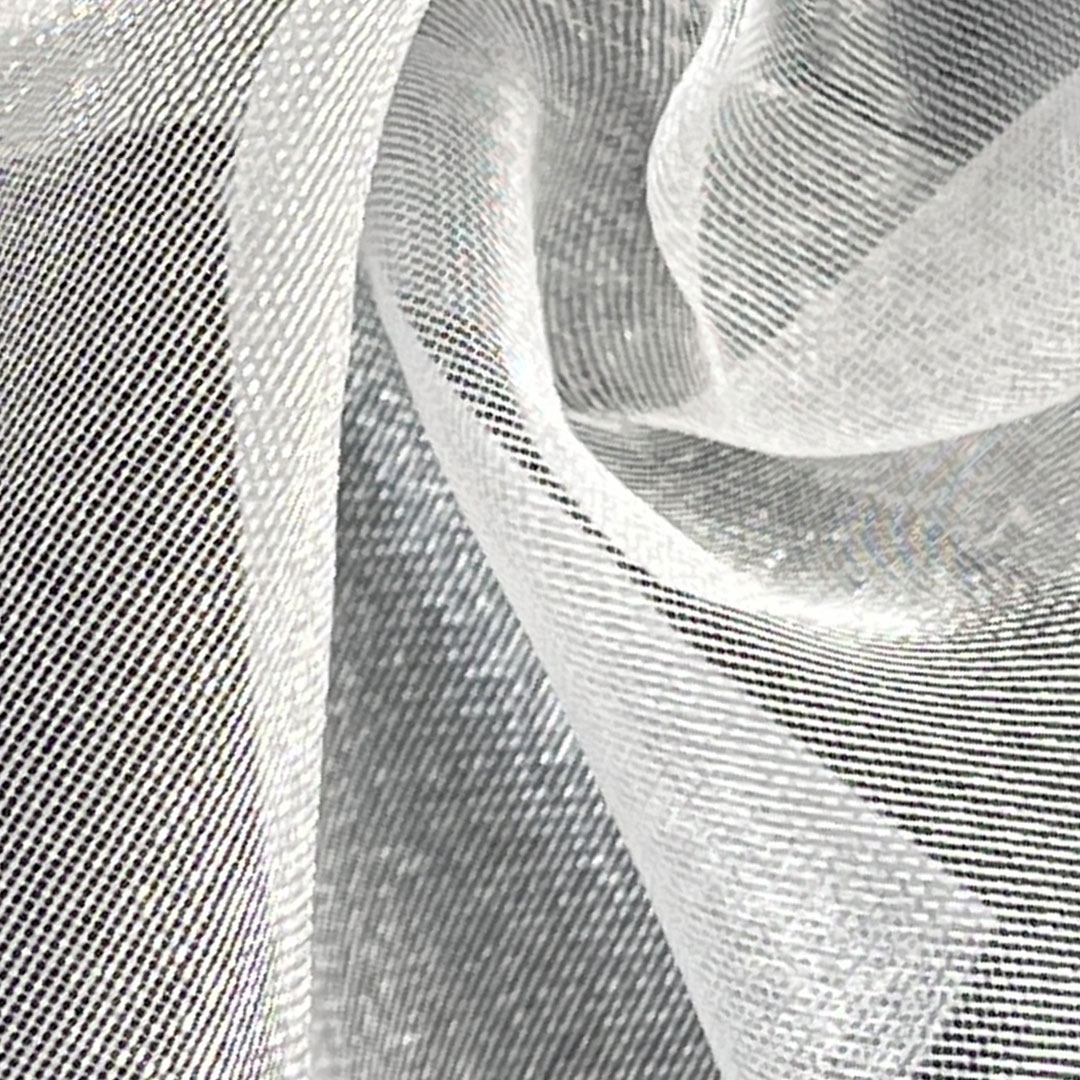 Crafted from 100% Polyester, our glossy translucent organza fabric is an exquisite choice for creating elegant dresses, theatrical costumes, and sophisticated blouses. This lightweight yet structured fabric features a delicate sheer quality with a distinct glossy finish that catches the light beautifully, adding depth and dimension to any design.