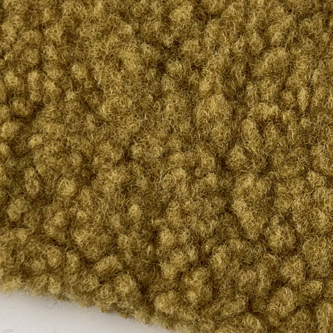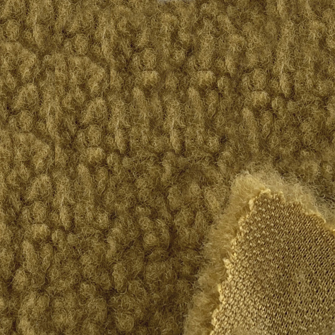 The deep-pile fleece interior creates a cloud-like softness, while the textured exterior adds visual interest and a rustic, inviting appeal. Made entirely from durable polyester, this fabric ensures long-lasting performance, resistance to pilling, shrinking, and moisture, and easy maintenance. The soft, brushed surface enhances comfort, while the structured yet flexible build allows for tailored fits in jackets and coats, and comfortable ease in sweatshirts.