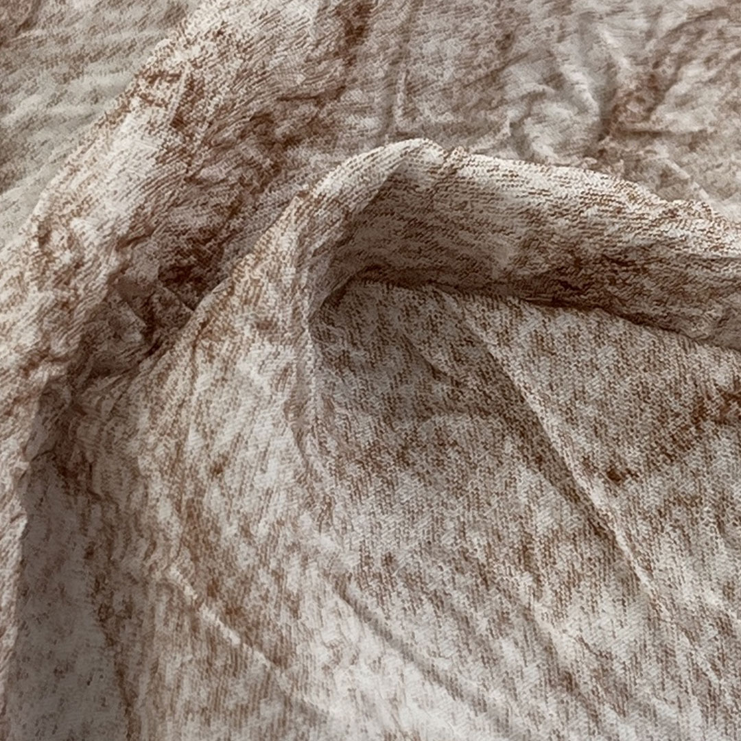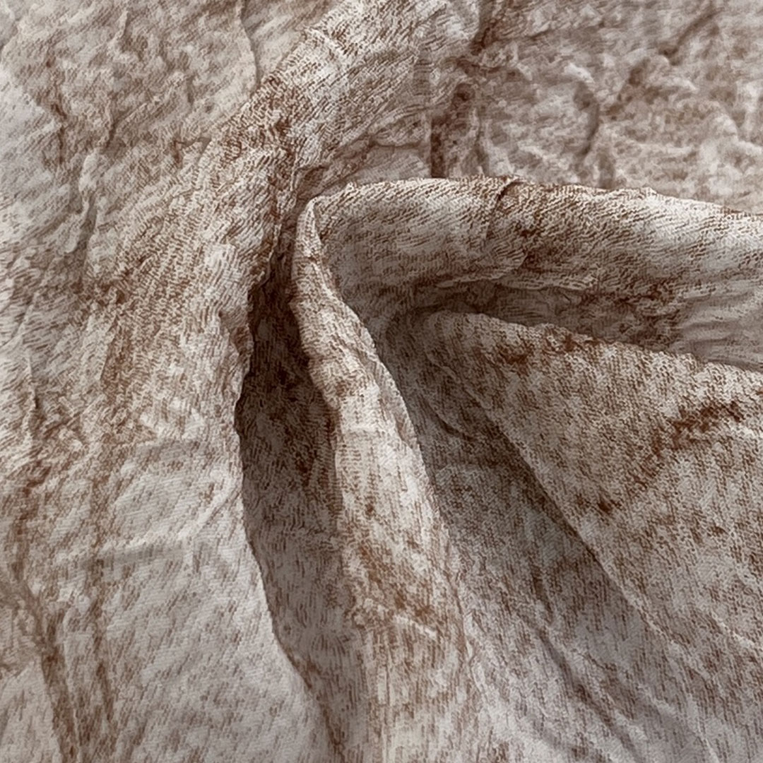 Weighing just 100gsm, this ultra-lightweight fabric provides a graceful, flowing drape that moves effortlessly with the body, creating elegant silhouettes perfect for special occasions. The crinkle texture is permanently set during manufacturing, maintaining its distinctive character through multiple wears and careful maintenance. Easy to care for and machine washable, this fabric retains its intricate texture, vibrant hues, and refined appearance over time.