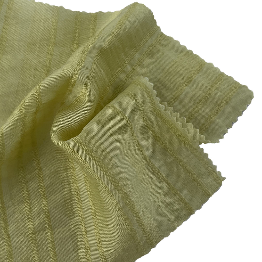 Discover the refined elegance and sustainable luxury of our 100gsm textured crepe fabric, expertly crafted from 28% Tencel, 45% Nylon, and 27% Polyamide. This lightweight fabric features the distinctive crinkled texture of crepe, creating a soft, fluid material that moves gracefully with the body and offers a beautiful, structured drape. Tencel, known for its silky smoothness and excellent moisture-wicking properties, ensures breathability and comfort in various climates. Nylon and polyamide together provide exceptional strength, durability, and resistance to abrasion, making the fabric ideal for garments that require both delicacy and resilience.