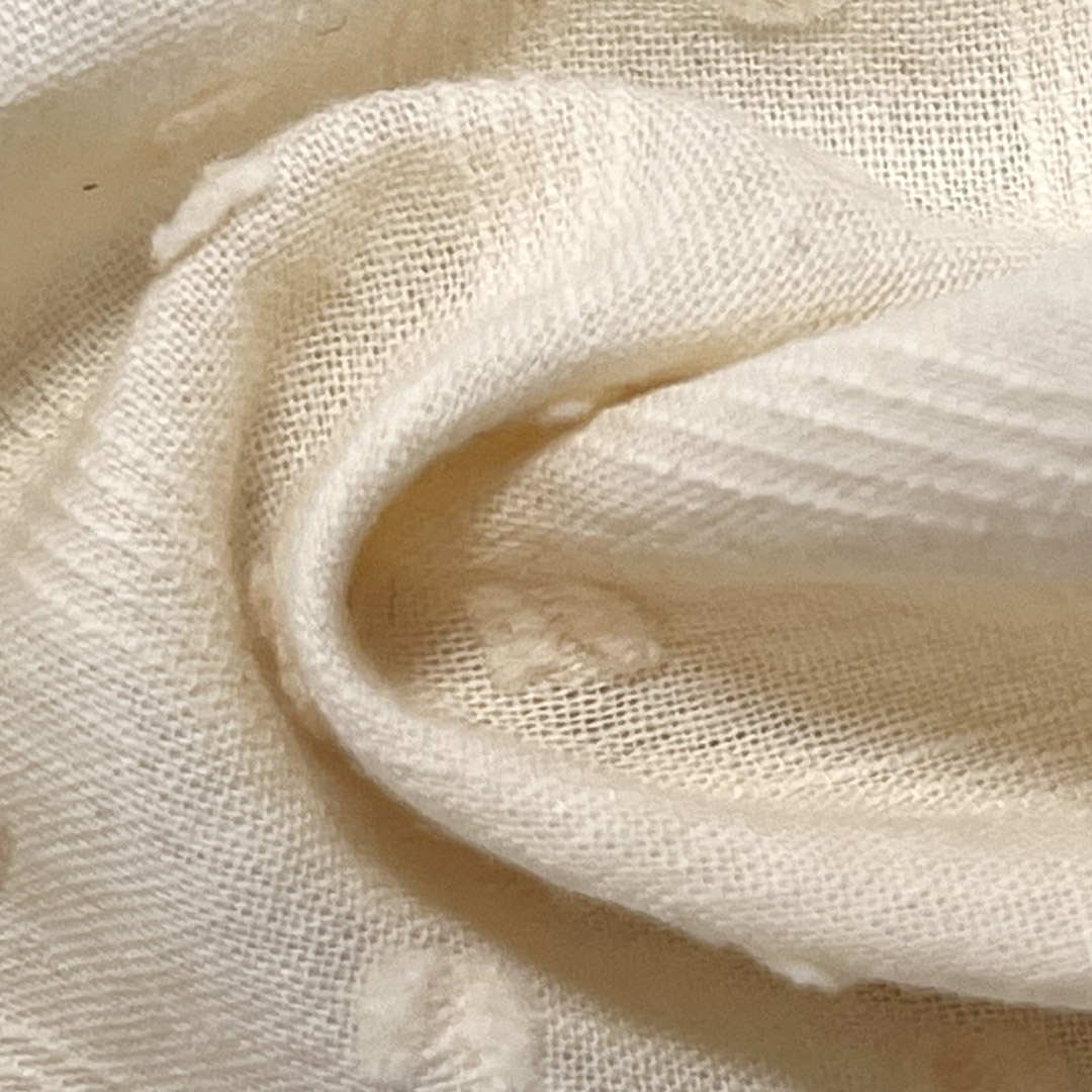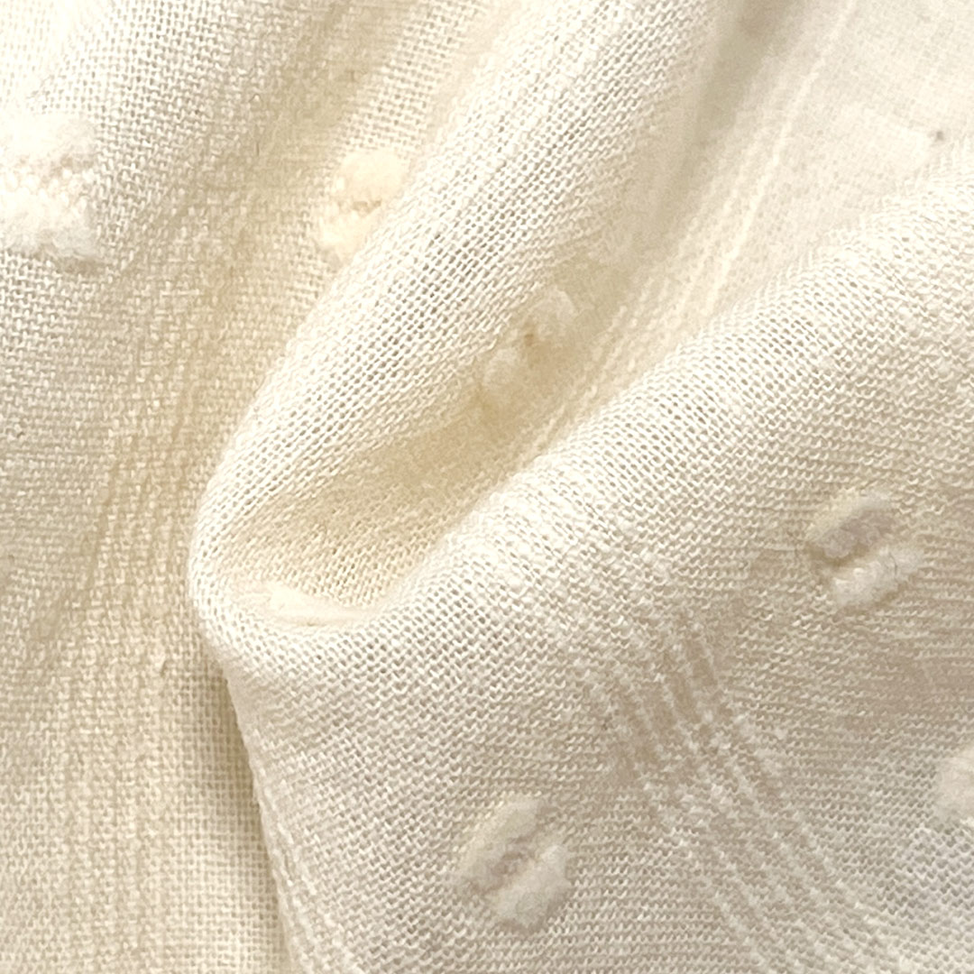 Discover the delicate charm and airy comfort of our 105gsm Dobby Dotted Swiss Fabric, expertly crafted from 100% Cotton to deliver an ultra-lightweight yet beautifully textured material perfect for warm-weather apparel.