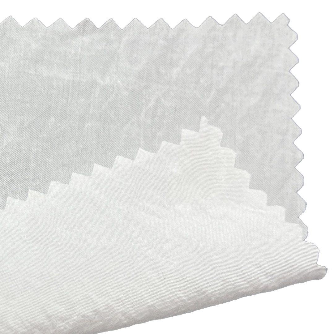 Polyester provides durability, shape retention, and wrinkle resistance, while nylon adds strength and elasticity. The inclusion of silk lends a luxurious sheen, softness, and enhanced drape. Weighing just 110gsm, this ethereal fabric offers a semi-transparent, airy feel that allows for beautiful layering and a romantic, flowing silhouette. The crinkled texture not only adds depth and tactile interest but also conceals minor wrinkles, making it practical for all-day wear. Its translucent nature lends itself to creative designs, from sheer overlays to softly structured garments that play with light and shadow.