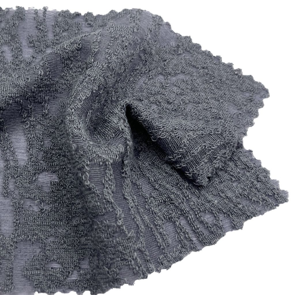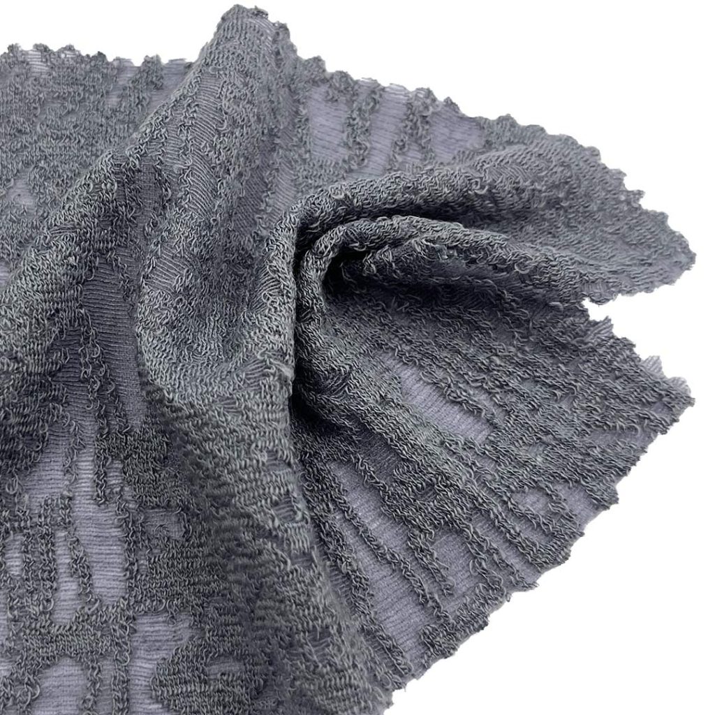 Weighing just 120gsm, this lightweight fabric is ideal for sweaters and cardigans, offering cozy comfort without bulk and allowing for graceful drape. The textured jacquard designs add a touch of sophistication to garments, elevating their aesthetic appeal. Easy to care for and machine washable, this fabric retains its delicate patterns, vibrant colors, and soft texture through repeated use.