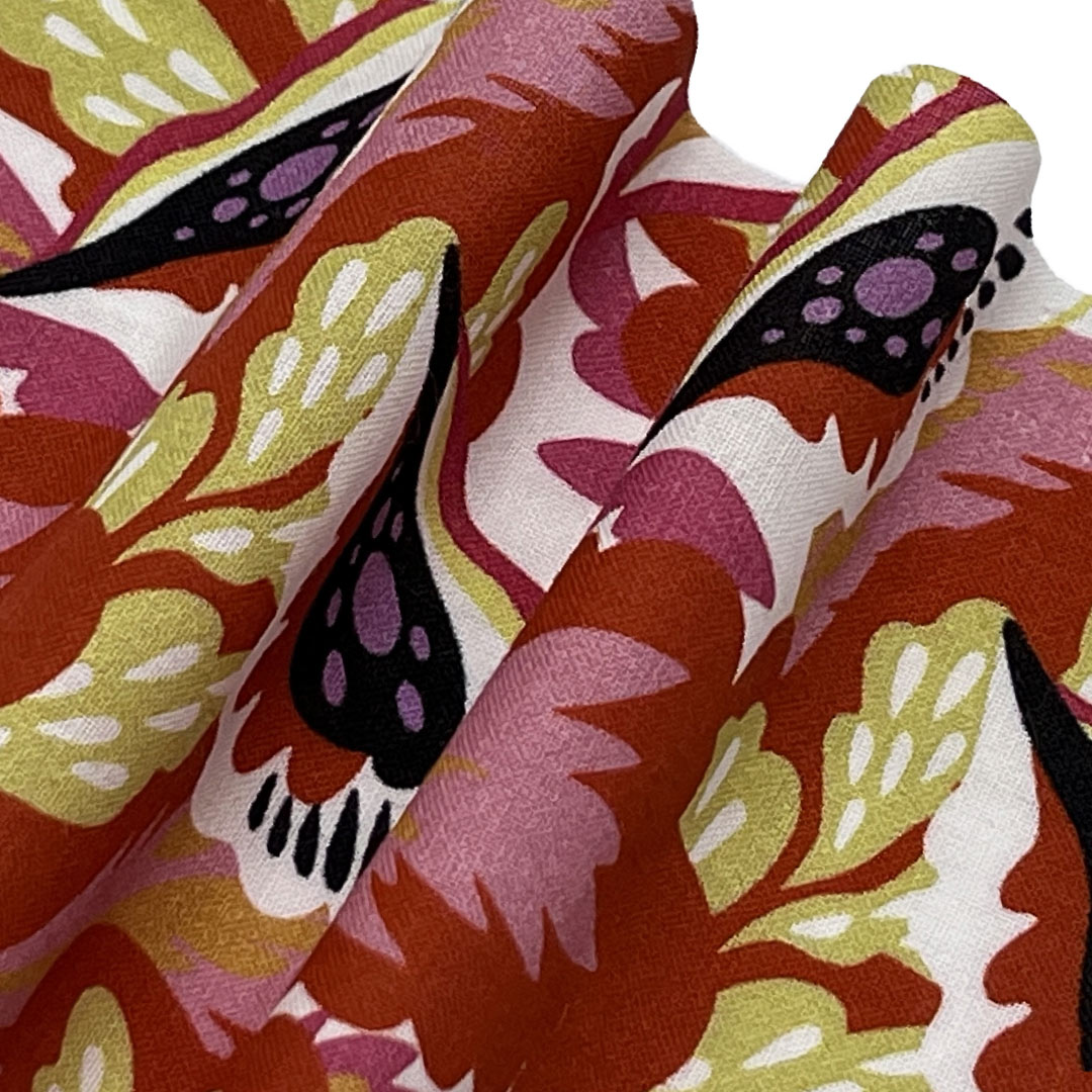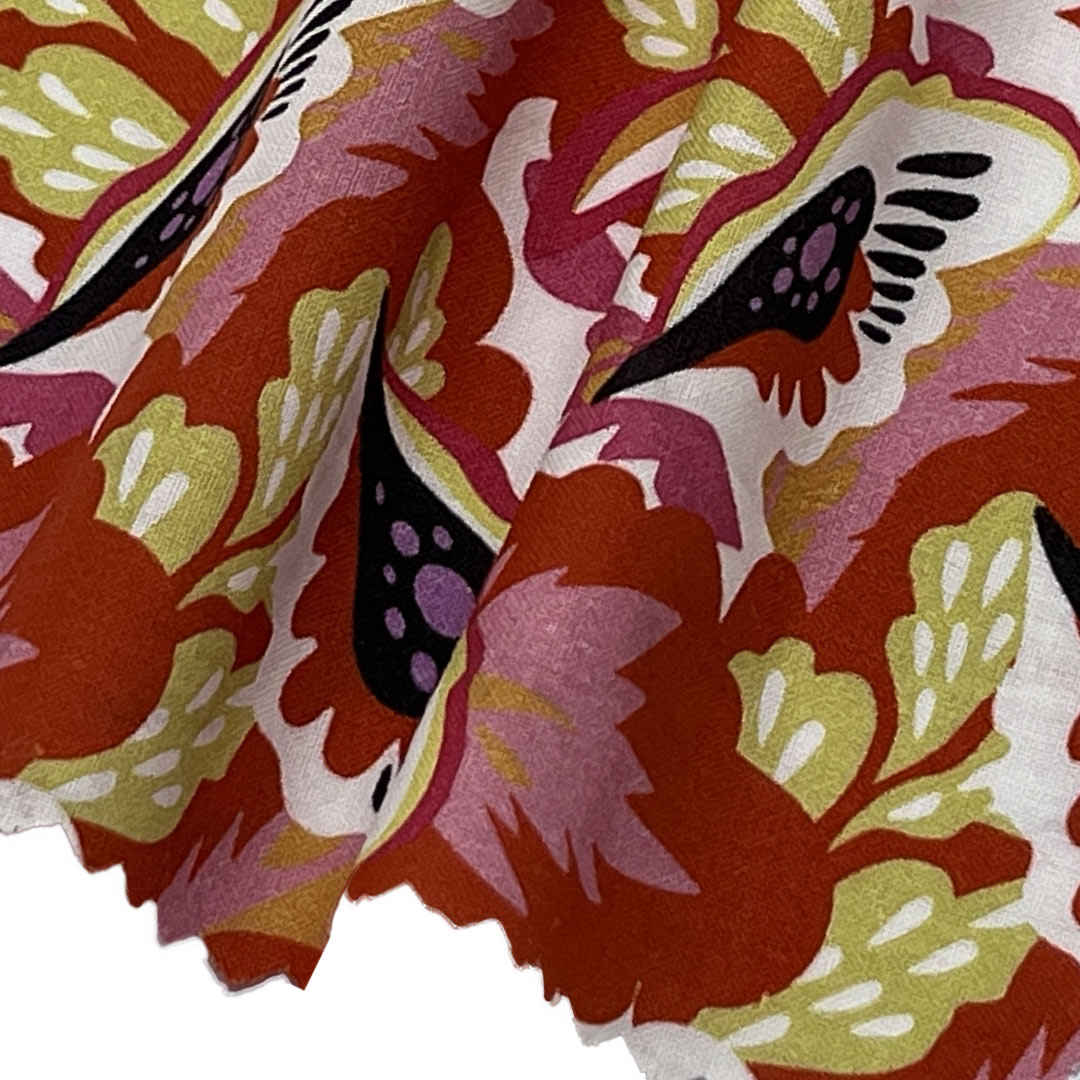 Weighing 120gsm, this lightweight fabric drapes beautifully and feels soft against the skin, offering comfort and ease of movement for warm-weather wear. The printed designs are carefully applied to maintain the fabric's natural texture and flexibility, ensuring both visual appeal and practical functionality. Perfect for flowing dresses that capture the essence of summer or chic beach cover-ups that combine style with sun protection, this fabric provides a balanced combination of lightness and durability.