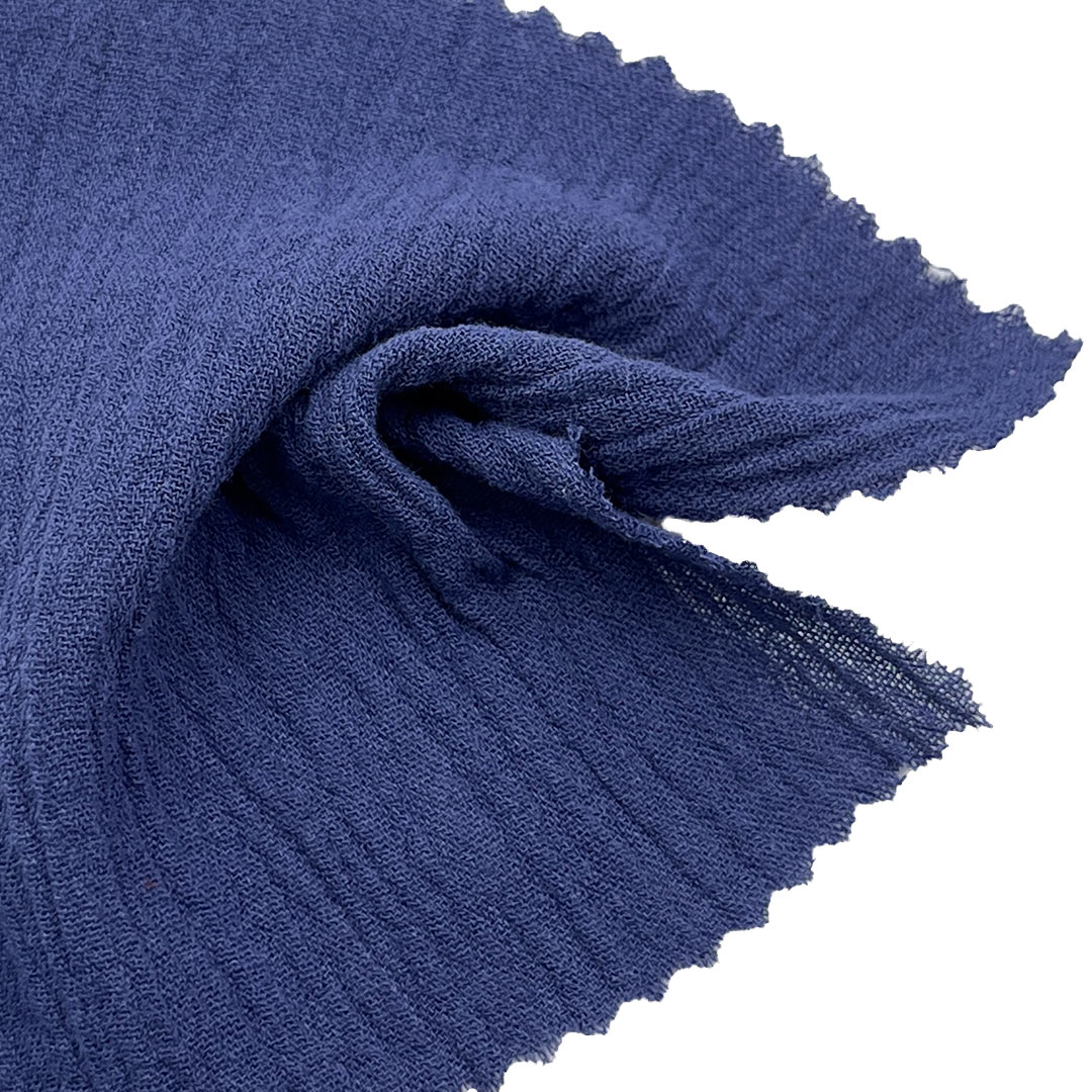 Experience the delicate artistry of our 140gsm textured crepe fabric, crafted entirely from 100% Cotton to create a lightweight, textured material with a subtle translucent quality. This exquisite fabric features the distinctive crinkled surface characteristic of crepe, providing a rich tactile experience with its pronounced textured hand feel that adds depth and dimension to any garment. The 100% cotton composition ensures natural breathability, moisture-wicking properties, and a soft, gentle touch against the skin. The semi-transparent nature of the fabric lends an airy, ethereal aesthetic, making it perfect for skirts and dresses that require both elegance and movement.