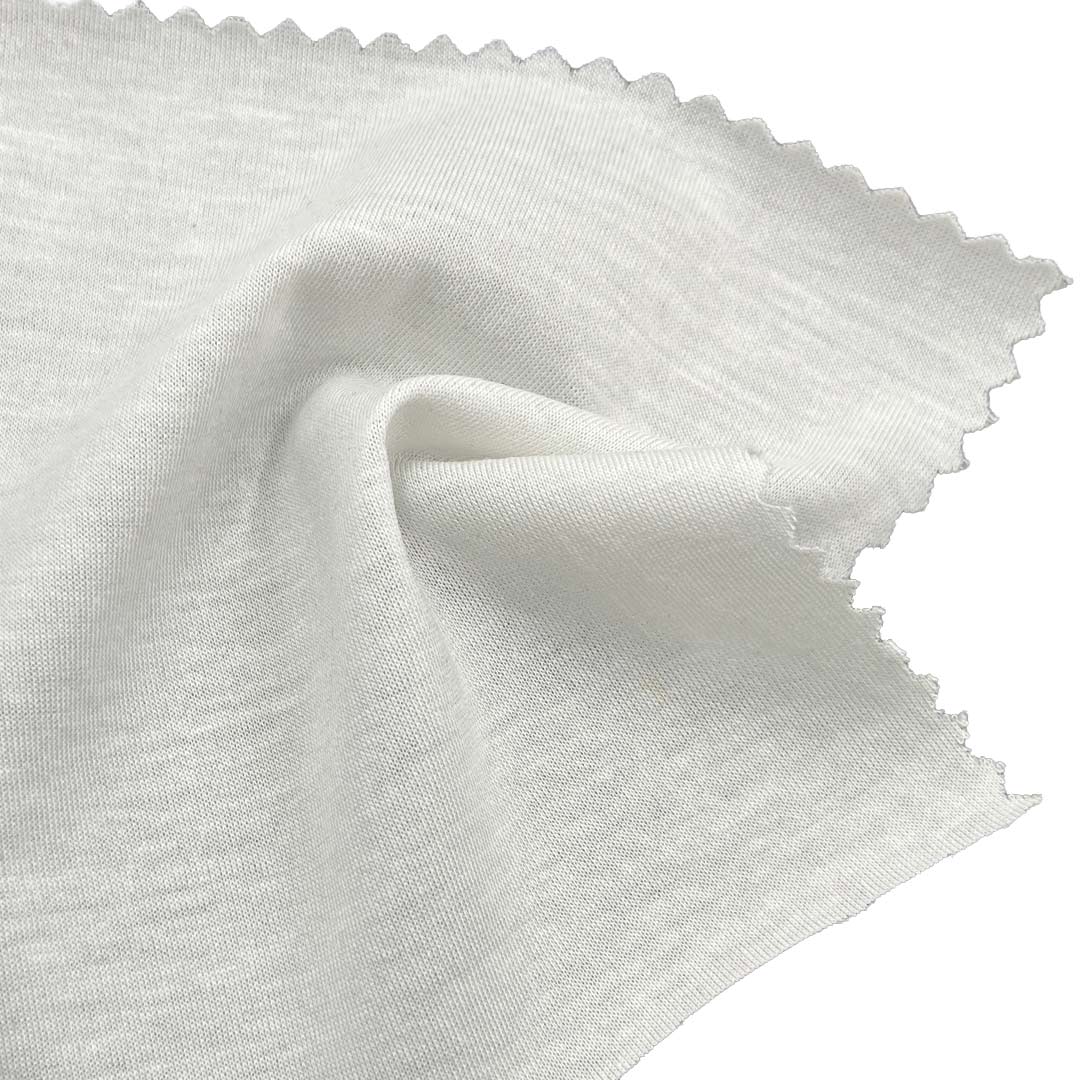 Weighing just 140gsm, this lightweight fabric offers a graceful, airy drape that makes it ideal for T-shirts and tops with a delicate, sophisticated aesthetic. Its translucent quality adds a layer of visual depth, while the smooth surface feels gentle against the skin. The blend of natural and synthetic fibers ensures both comfort and longevity, making it suitable for everyday wear that doesn't compromise on style. Easy to care for and machine washable, this fabric maintains its luminous finish, vibrant colors, and silky texture over time.