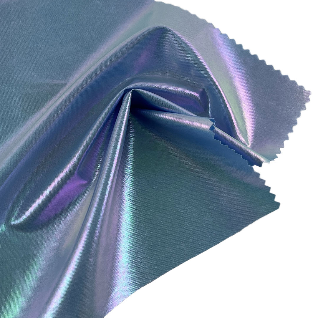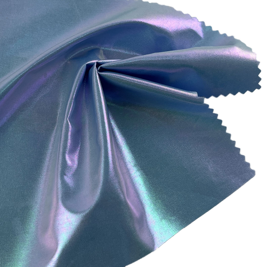 Designed to captivate and illuminate, our 150gsm iridescent fabric is crafted from 100% Nylon to create a lightweight, luminous material that shimmers with changing hues under light. This exquisite fabric features a special iridescent finish that produces a dazzling play of colors, from pearlescent pastels to vibrant metallic shades, making it perfect for dresses and evening gowns destined for special occasions. Nylon ensures durability, smoothness, and a delicate drape, while the iridescent coating adds a dimension of light-reflective brilliance that enhances every movement.