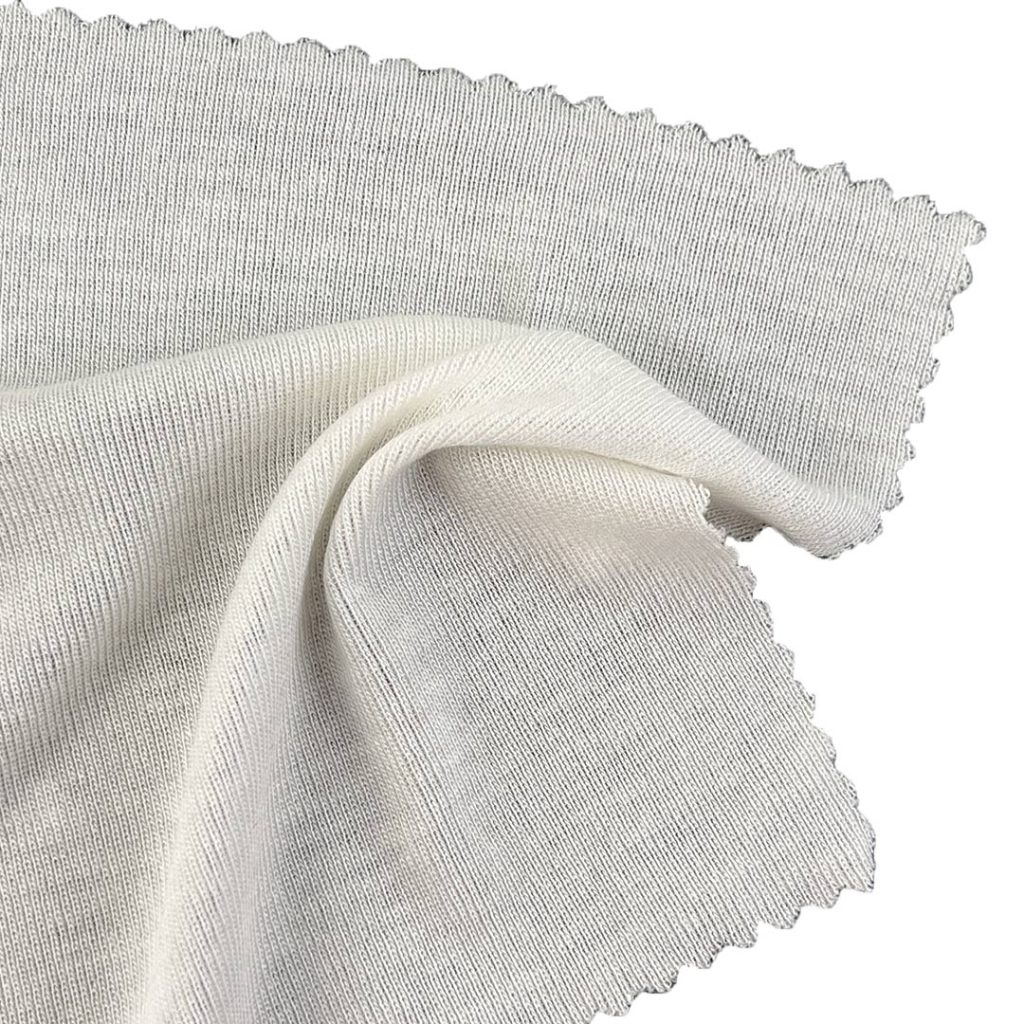 This premium 155gsm (4.6 oz) Rib fabric combines 79.4% Lyocell/Tencel, 17.4% Wool, and 3.2% Spandex to create a material celebrated for its delicate texture and exceptional drape. The high Lyocell/Tencel content provides a luxuriously smooth, silky hand feel and beautiful fluidity, making it ideal for elegant dresses, flowing T-shirts, and delicate tops that require graceful movement. The 17.4% Wool addition enhances the fabric's thermal properties, adding subtle warmth without weight, while also contributing to the refined texture and rich appearance. The minimal 3.2% Spandex offers just enough stretch for comfort and recovery, ensuring that dresses and tops maintain their shape while allowing for easy movement. The Rib construction creates a subtle vertical texture that enhances the fabric's drape and provides visual interest, making it particularly suitable for garments that rely on elegant silhouettes. Weighing only 155gsm, this lightweight fabric feels airy and comfortable against the skin, perfect for creating layered looks in T-shirts or standalone pieces like dresses and tops. The blend of Lyocell/Tencel and Wool creates a fabric that drapes beautifully, with folds and falls that enhance the garment's design, making it especially flattering for dresses and feminine tops. This fabric maintains its delicate texture and drape characteristics through repeated wear and washing, with excellent color retention and resistance to pilling. The natural temperature-regulating properties of both Lyocell/Tencel and Wool make this fabric suitable for year-round wear, providing comfort in various climates. Designers will appreciate how this premium Rib fabric elevates simple designs into sophisticated garments, with its delicate texture and superior drape adding value to dresses, T-shirts, and tops that appeal to consumers seeking both luxury and comfort in their wardrobe essentials.