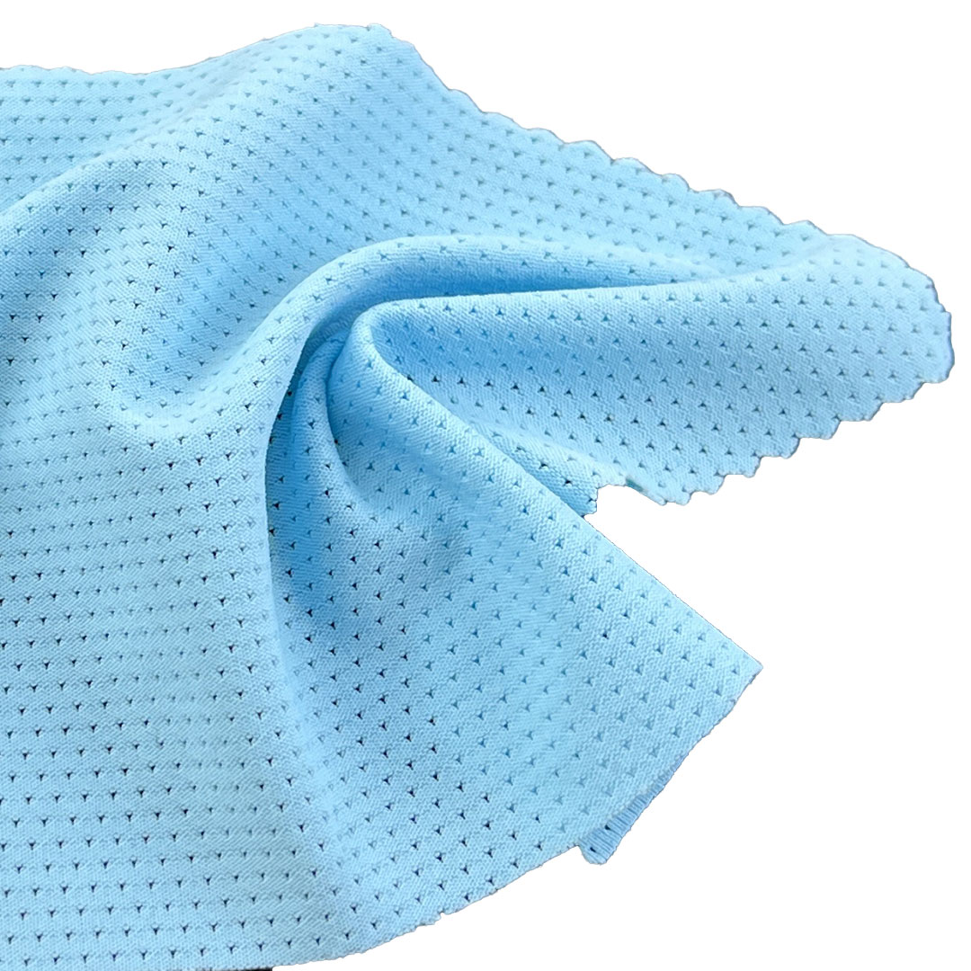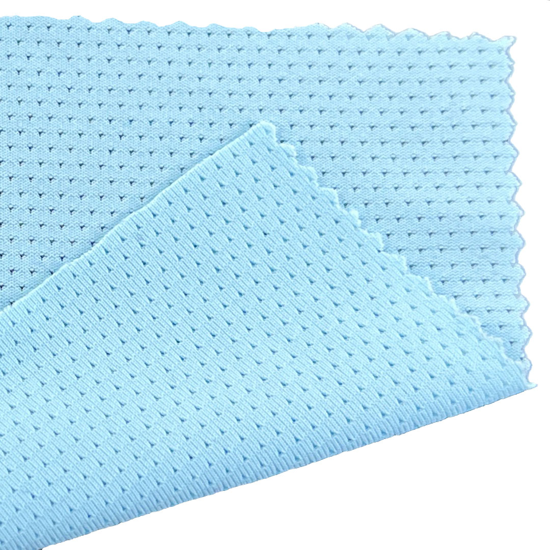 This fabric features a unique bird eye weave that enhances breathability through tiny porous openings, while the high Spandex content ensures exceptional 4-way stretch for complete freedom of movement. Nylon provides excellent durability, quick-drying properties, and resistance to abrasion and chlorine, making it particularly suitable for swimwear and active apparel. Weighing just 160gsm, this lightweight fabric offers a comfortable second-skin feel without compromising on support or coverage. The breathable construction promotes airflow and moisture-wicking, keeping you cool and dry during various activities. Its smooth texture and flexible nature make it ideal for form-fitting garments that require both style and function.