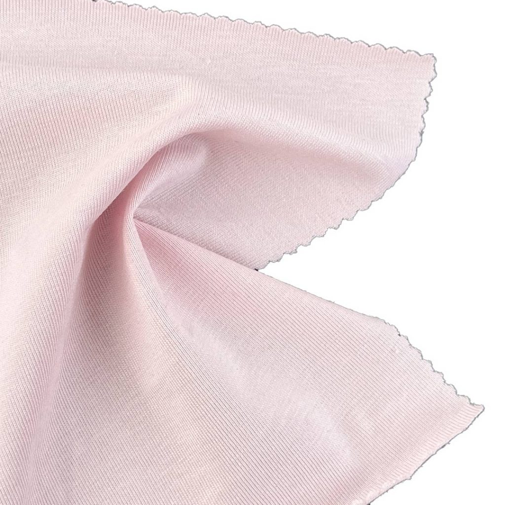 This 170gsm (5.0 oz) Single Jersey fabric combines 47% Cotton, 47% Modal, and 6% Spandex to create an exceptionally soft and smooth material that feels luxurious against the skin. The balanced blend of cotton and modal provides excellent breathability and moisture-wicking properties, while the spandex adds comfortable stretch and recovery, making it ideal for a wide range of garments including dresses, sleepwear, long sleeve shirts, T-shirts, tops, and underwear. The lightweight 170gsm construction ensures a fluid drape that works perfectly for flowing dresses and comfortable sleepwear, while still providing enough substance for everyday T-shirts and long sleeve shirts. Modal, a bio-based fiber derived from beech trees, enhances the fabric's silky smoothness and gives it a beautiful drape that elevates the quality of dresses and tops. The six percent spandex content offers just the right amount of elasticity for form-fitting dresses, comfortable sleepwear, and supportive underwear, ensuring all garments maintain their shape after repeated wear and washing. This fabric's soft hand feel and smooth surface make it particularly suitable for sensitive skin, which is essential for sleepwear and underwear that are worn for extended periods. The natural temperature-regulating properties of both cotton and modal make this fabric comfortable to wear year-round in various climates. Its excellent color retention and resistance to pilling ensure that dresses, T-shirts, and other garments maintain their like-new appearance even after multiple washes. Designers will appreciate how this versatile Single Jersey fabric can create coordinated collections across multiple apparel categories, from elegant dresses and comfortable sleepwear to basic T-shirts and premium underwear, all sharing the same exceptional comfort and quality standards that today's consumers demand in their everyday wardrobe essentials.