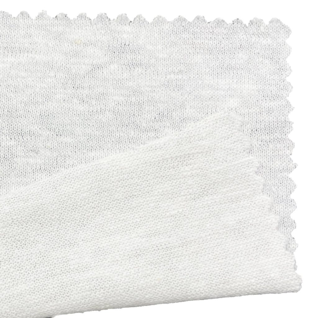 The single jersey construction enhances the fabric's flexibility, while the linen-cotton blend creates subtle slubs and natural variations that add visual depth. The coarse texture not only contributes to the fabric's distinctive aesthetic but also improves its resistance to wrinkles, maintaining a casually elegant appearance. Easy to care for and machine washable, this fabric becomes progressively softer with each wash while retaining its textured character.