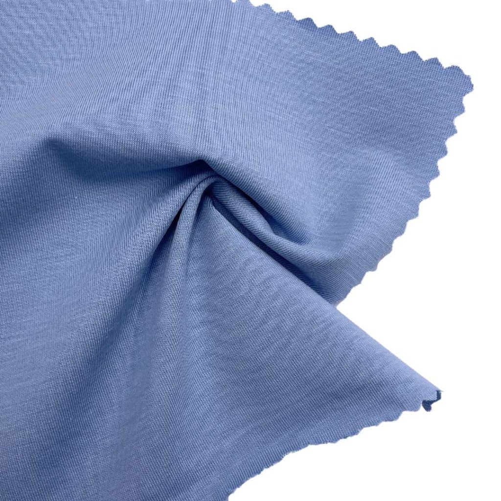 Indulge in the luxurious combination of comfort and elegance with our 180gsm Single Jersey Plated Fabric, expertly crafted from 35% Cotton, 35% Viscose, and 30% Polyester. This sophisticated fabric features a plated knitting technique that enhances its durability and creates a exceptionally smooth hand feel with a subtle glossy finish. The cotton content provides natural softness and breathability, while viscose adds a fluid drape and enhanced moisture-wicking properties. Polyester ensures long-lasting color retention, shape stability, and resistance to wrinkles. Weighing just 180gsm, this lightweight fabric offers a graceful drape that moves beautifully with the body, making it ideal for flowing dresses and comfortable T-shirts. The plated construction gives the fabric a refined density and a delicate sheen that elevates the overall aesthetic of any garment. Its smooth surface and glossy appearance create an elegant look suitable for both casual and semi-formal wear. Easy to care for and machine washable, this fabric maintains its luminous finish, vibrant colors, and silky texture over time. Whether designing everyday T-shirts with a touch of sophistication or elegant dresses for special occasions, this Single Jersey Plated Fabric empowers you to create garments that radiate refined style and everyday comfort.