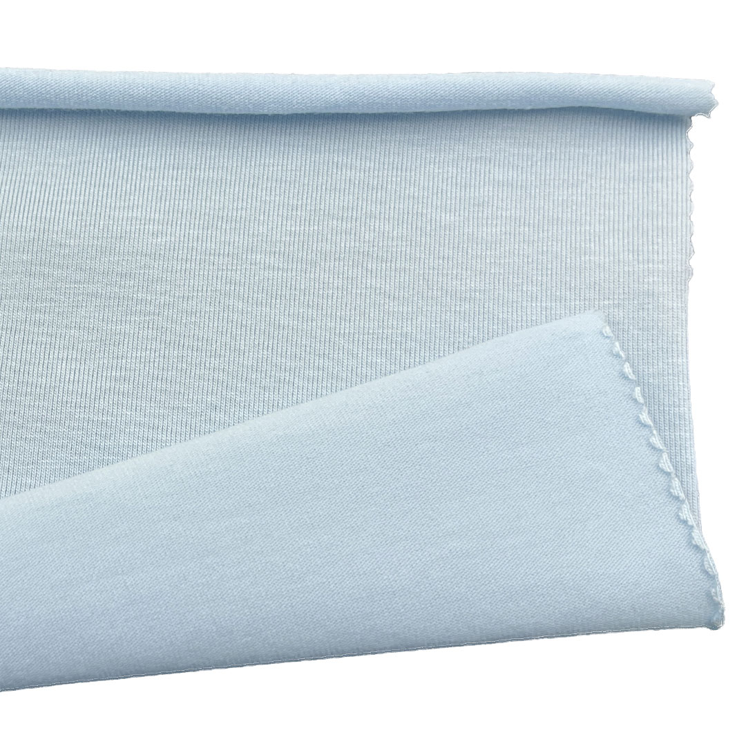 This 180gsm (5.3 oz) fabric blended with 50.9% modal, 45% cotton, and 4.1% spandex is a single jersey material known for its cool touch and soft, smooth surface, making it ideal for dresses, long sleeve shirts, and underwear. The modal fibers provide a silky texture and excellent breathability, combined with the natural skin-friendly properties of cotton, ensuring all-day comfort. The added spandex offers moderate stretch, allowing dresses, long sleeve shirts, and underwear to fit snugly while allowing freedom of movement. The fabric's specially treated surface delivers a pleasantly cool sensation, perfect for spring and summer wear or warm environments. The lightweight 180gsm construction provides an elegant drape, making dresses flow gracefully and long sleeve shirts and underwear feel light and comfortable. The fabric also features good moisture-wicking properties, keeping the skin dry and fresh. Easy to care for, it is durable through washing and maintains vibrant colors and shape stability. Whether for elegant dresses, comfortable long sleeve shirts, or delicate underwear, this modal-cotton-spandex single jersey meets modern consumers' demands for comfort and aesthetics in high-quality.