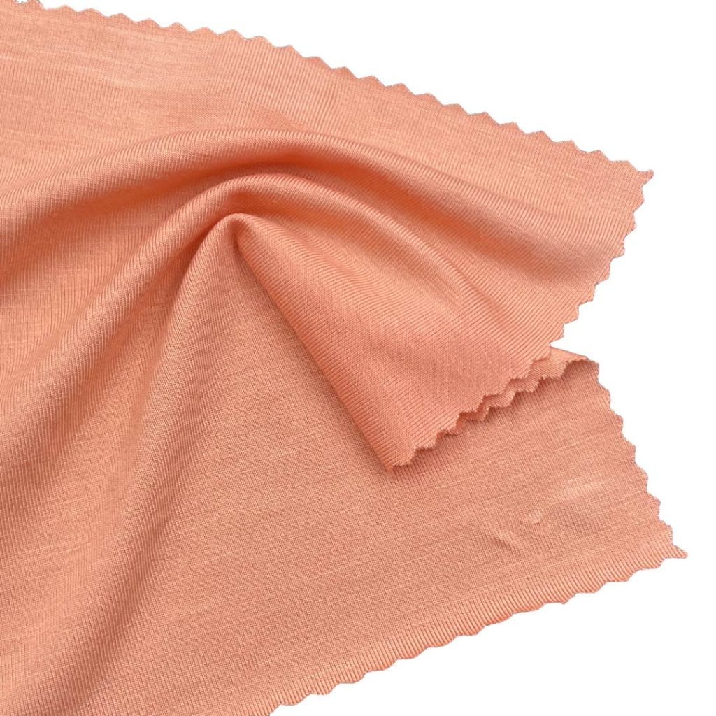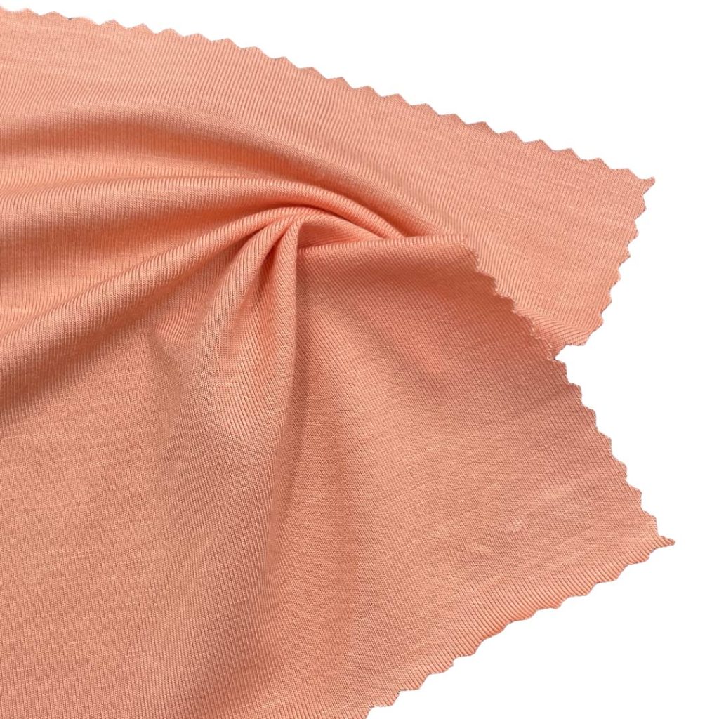 The high viscose content ensures excellent moisture-wicking properties and temperature regulation, keeping you comfortable in various climates. With 6% Spandex woven throughout, the fabric delivers outstanding elasticity and recovery in all directions, allowing complete freedom of movement without losing its shape. Weighing just 180gsm, this lightweight fabric drapes beautifully and feels almost weightless against the skin, making it ideal for flowing dresses and comfortable T-shirts. The smooth single jersey construction provides a gentle touch against the skin, while the 4-way stretch ensures a perfect fit that adapts to your every move. Easy to care for and machine washable, this fabric becomes even softer with each wash while retaining its vibrant colors and structural integrity.