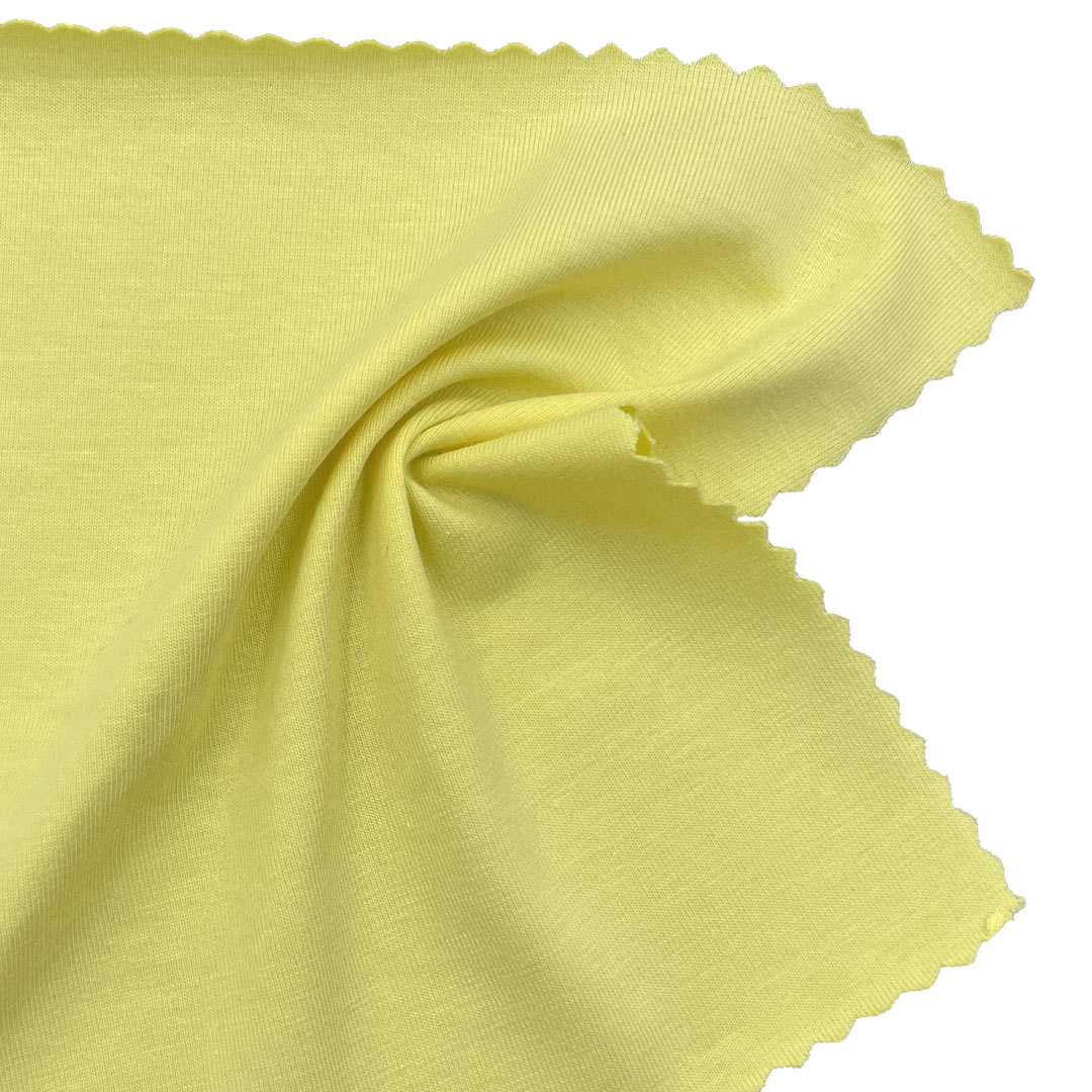 This 180gsm (5.3 oz) fabric blended with 96% cotton and 4% spandex is a single jersey material known for its delicate smoothness and excellent breathability, making it ideal for dresses, long sleeve shirts, and underwear. The high-quality cotton fibers provide a soft, skin-friendly touch, while the spandex offers moderate stretch for a comfortable fit that moves with the body. The refined surface treatment gives the fabric a silky smooth texture, particularly suitable for intimate wear and offering unparalleled comfort in underwear and dresses. The lightweight 180GSM construction provides an elegant drape, allowing dresses and long sleeve shirts to follow body contours naturally while maintaining a light, airy feel. With excellent moisture-wicking properties, the fabric keeps the skin dry and comfortable, perfect for daily wear and loungewear. Easy to care for, the fabric is durable through multiple washes while retaining its vibrant color and shape stability. Whether for elegant dresses, comfortable long sleeve shirts, or intimate underwear, this fabric perfectly combines comfort and functionality to meet modern consumers' demands for high-quality贴身服饰.