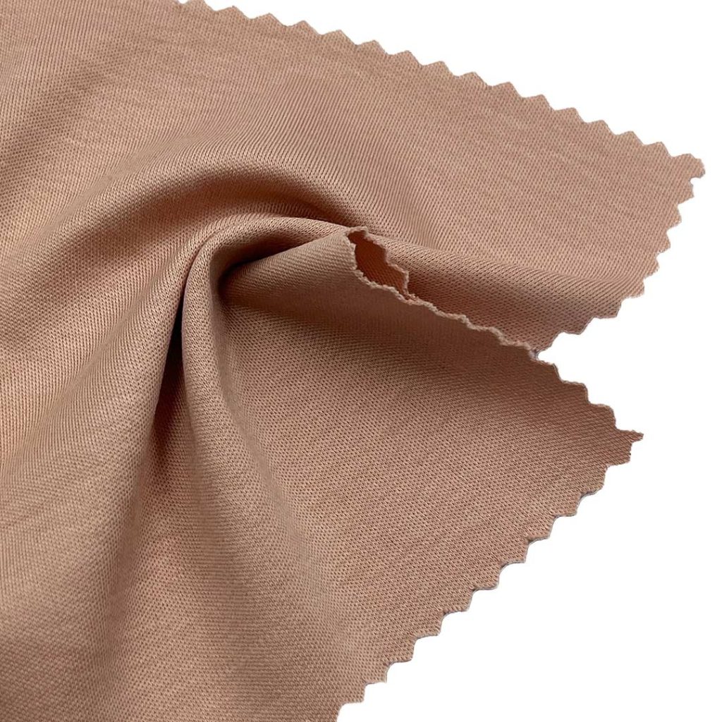 The balanced blend delivers exceptional softness and a fine texture against the skin, with cotton ensuring breathability and comfort while Spandex offers superior stretch and recovery. Weighing 185gsm, this lightweight fabric offers beautiful drape for elegant dresses and comfortable fit for well-defined shirts and polos. The mercerized finish creates a smooth, lustrous surface that feels gentle on the skin, while the interlock structure ensures the fabric maintains its shape through extended wear.