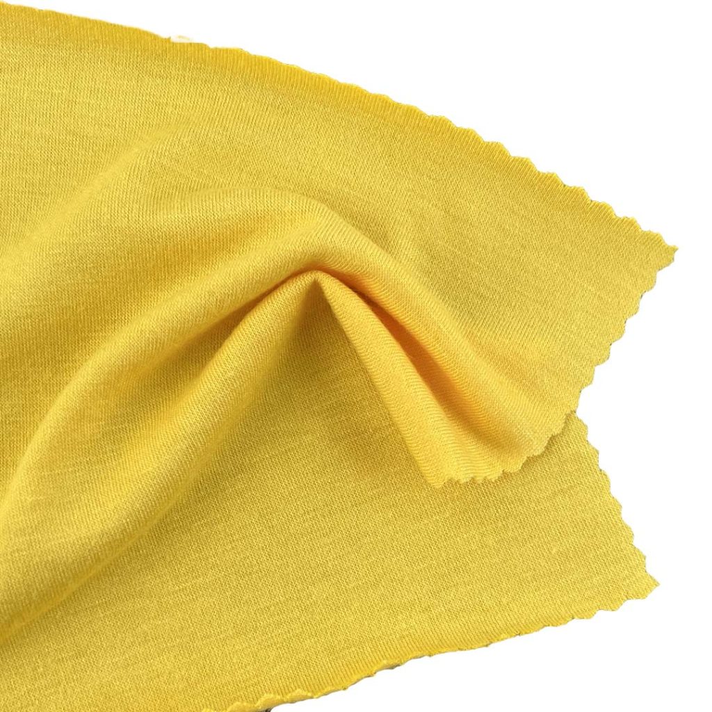 With 5% Spandex woven throughout, the fabric offers excellent stretch recovery and shape retention, making it ideal for form-fitting garments like dresses, pajamas, T-shirts, tops, leggings, and underwear. Weighing 200gsm, this lightweight yet substantial fabric provides optimal coverage without bulk, allowing for graceful movement and comfortable wear throughout the day or night. The fabric's fluid drape creates elegant lines in dresses and tops, while its 4-way stretch ensures unrestricted movement in activewear and fitted garments. Easy to care for and machine washable, this fabric maintains its soft texture, vibrant colors, and stretch properties over time.