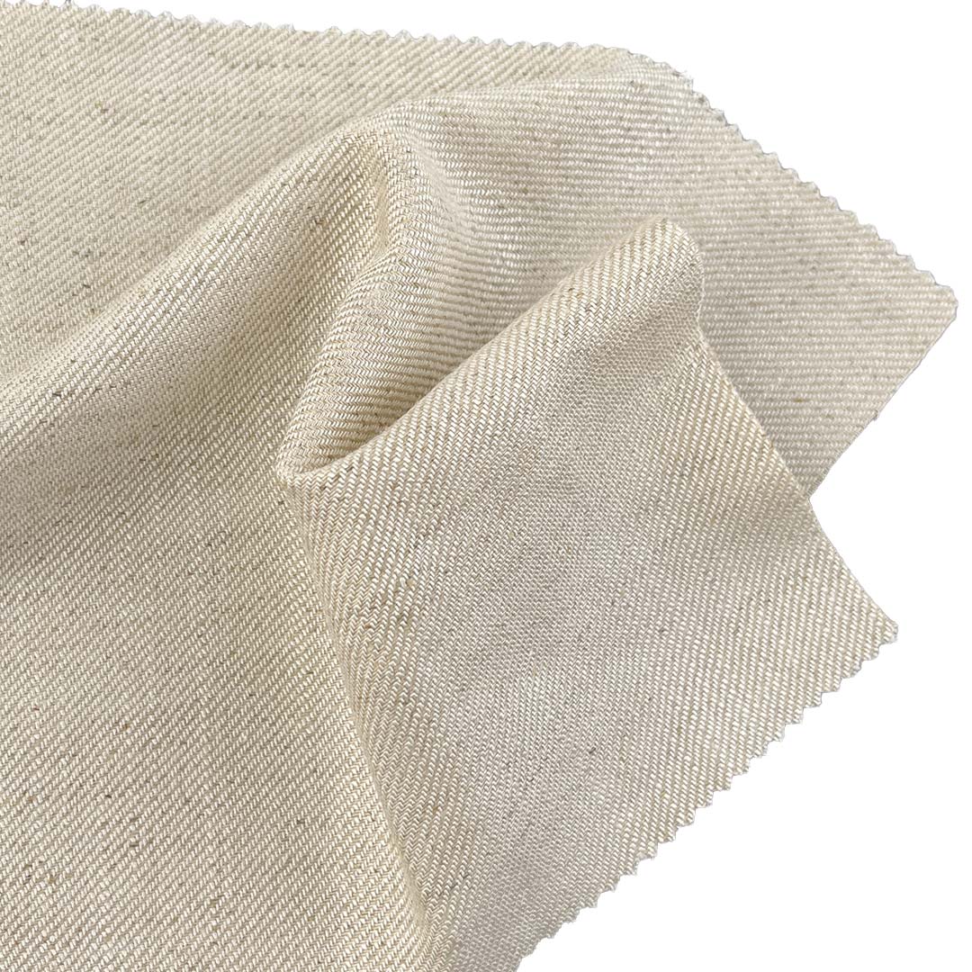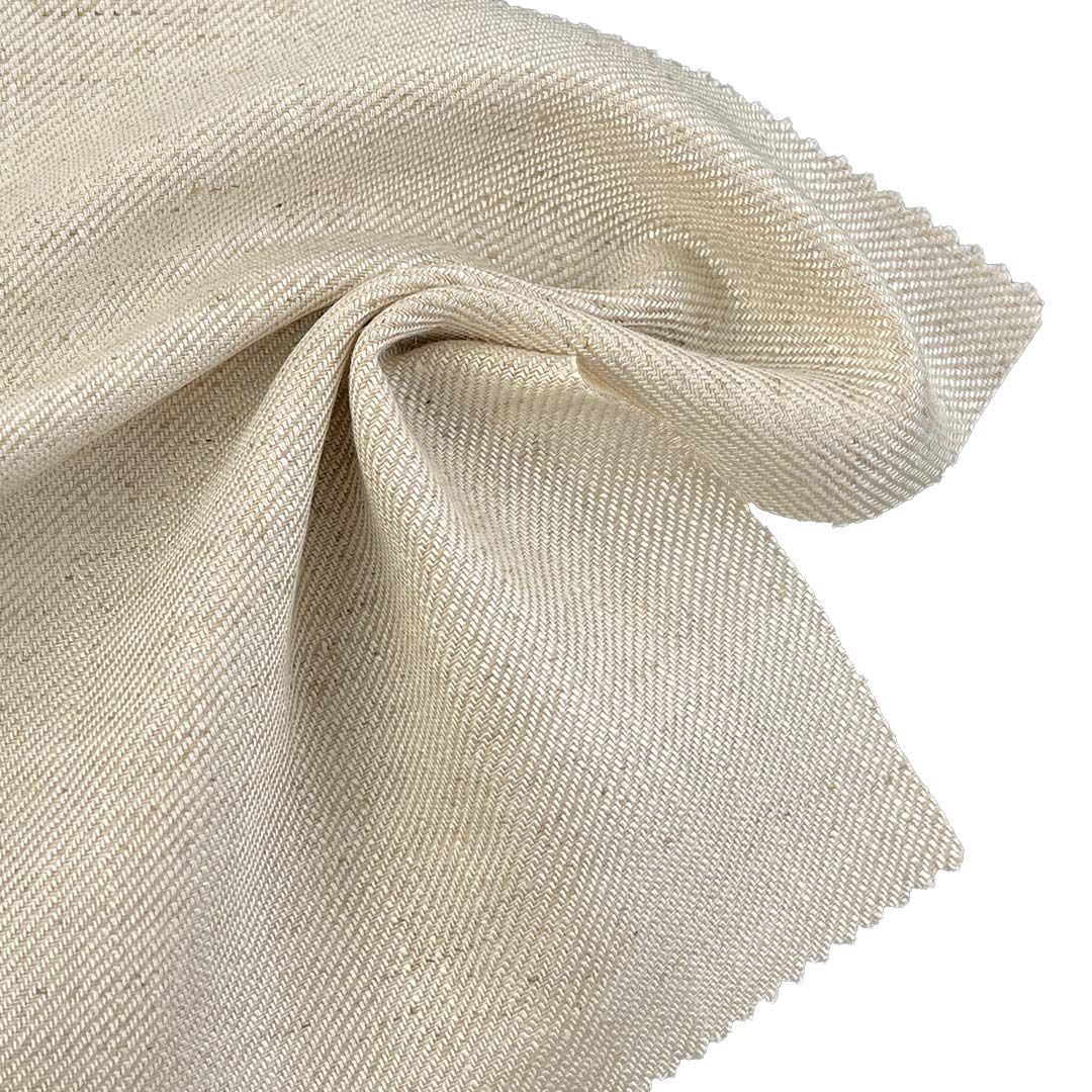 Linen provides structure, moisture-wicking properties, and a distinctive coarse character, while Lyocel adds a silky drape, enhanced breathability, and eco-friendly appeal. The 3% Spandex ensures comfortable stretch and recovery, allowing for ease of movement without compromising the fabric's rustic aesthetic. This fabric's unique composition makes it exceptionally versatile, suitable for both workwear and fashion-forward garments. Its breathable nature ensures comfort during extended wear, while the textured surface adds depth and tactile interest to any design. Easy to care for and machine washable, this fabric retains its earthy charm and functional integrity over time.