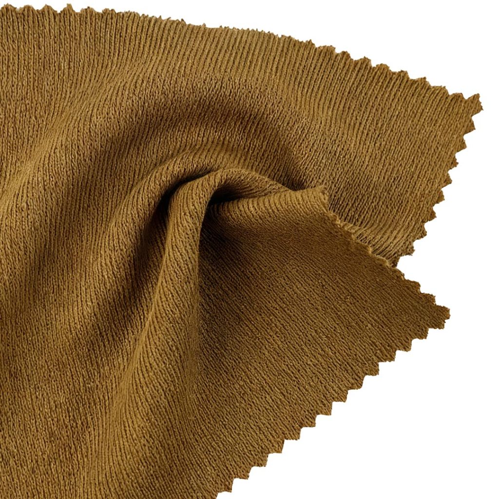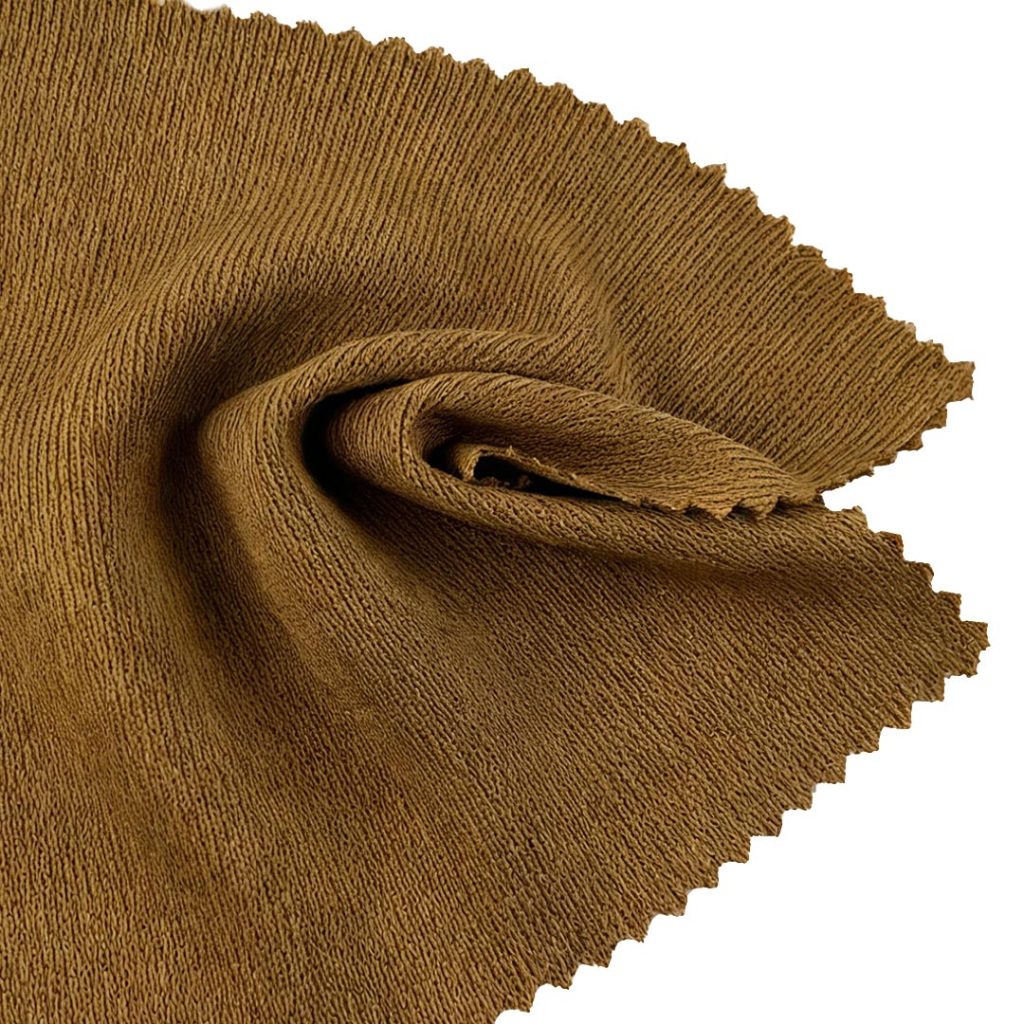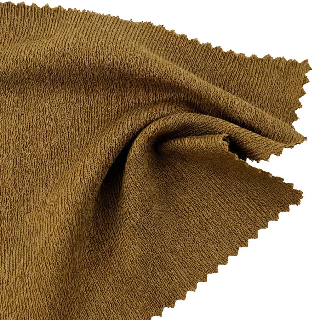 Weighing 220gsm, this medium-weight fabric delivers optimal drape and structure, making it equally suitable for flowing dresses, tailored long sleeve shirts, comfortable pants, casual T-shirts, and functional sportswear. The ribbed sections offer gentle stretch and excellent recovery, allowing for freedom of movement without compromising the garment's fit, while the double knit areas ensure long-lasting quality and a polished appearance.
