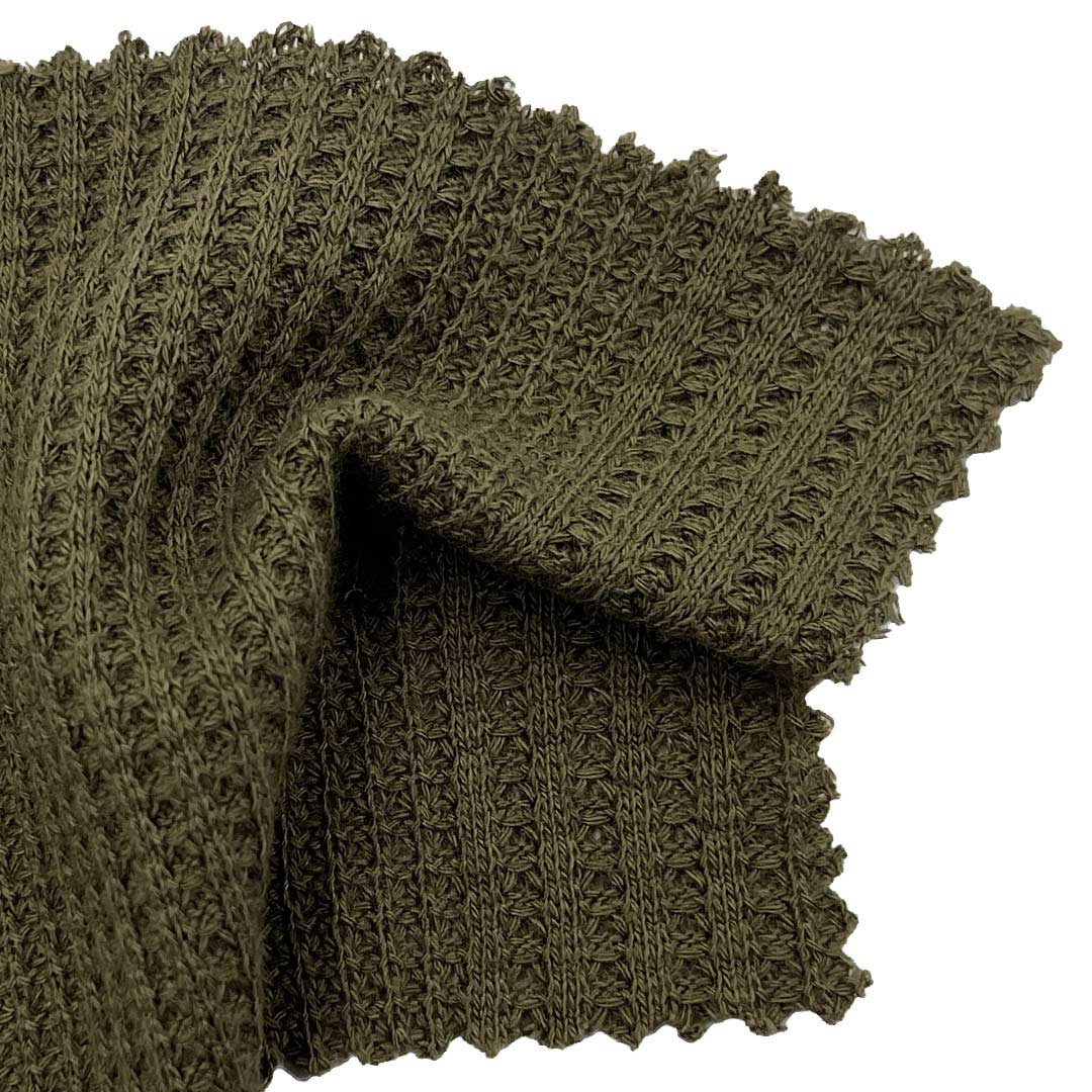 Discover the unique combination of comfort and visual appeal with our 220gsm Waffle Jacquard Fabric, crafted from an innovative blend of 61% polyester, 34% cotton, and 5% spandex. This distinctive fabric merges the dimensional texture of waffle weave with the intricate patterns of jacquard, creating a material with a wonderfully soft hand feel and rich texture that's perfect for both sweatshirts and dresses. The waffle construction features a grid-like pattern that enhances breathability and adds visual depth, while the jacquard technique introduces elaborate designs that elevate the fabric's aesthetic quality. At 220gsm (7.8 oz), this medium-weight fabric provides comfortable coverage without feeling heavy, making it suitable for year-round wear in various conditions. The polyester content ensures excellent durability, color retention, and resistance to wrinkles, while the cotton provides natural softness and breathability. The spandex adds just the right amount of stretch for comfortable movement and shape retention. The soft hand feel makes it comfortable for all-day wear, while the textured surface creates interesting light and shadow effects that enhance simple garment designs. This fabric is particularly well-suited for creating fashion-forward apparel, as it provides the comfort and flexibility needed for casual sweatshirts, while offering the visual interest and drape required for stylish dresses. The unique combination of waffle texture and jacquard patterns creates a fabric that stands out in any collection, offering both tactile and visual appeal. This Waffle Jacquard Fabric maintains its textural qualities and softness through proper care, developing an even more comfortable character over time while preserving its structural integrity. Easy to care for and perfect for various garment applications, it's the ideal choice for creating coordinated sweatshirt and dress collections that combine contemporary style with everyday comfort. Whether designing for modern casual wear, fashion-forward collections, or stylish everyday outfits, this 220gsm Waffle Jacquard Fabric delivers the perfect balance of comfort, texture, and visual interest that discerning consumers seek.