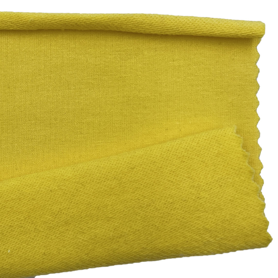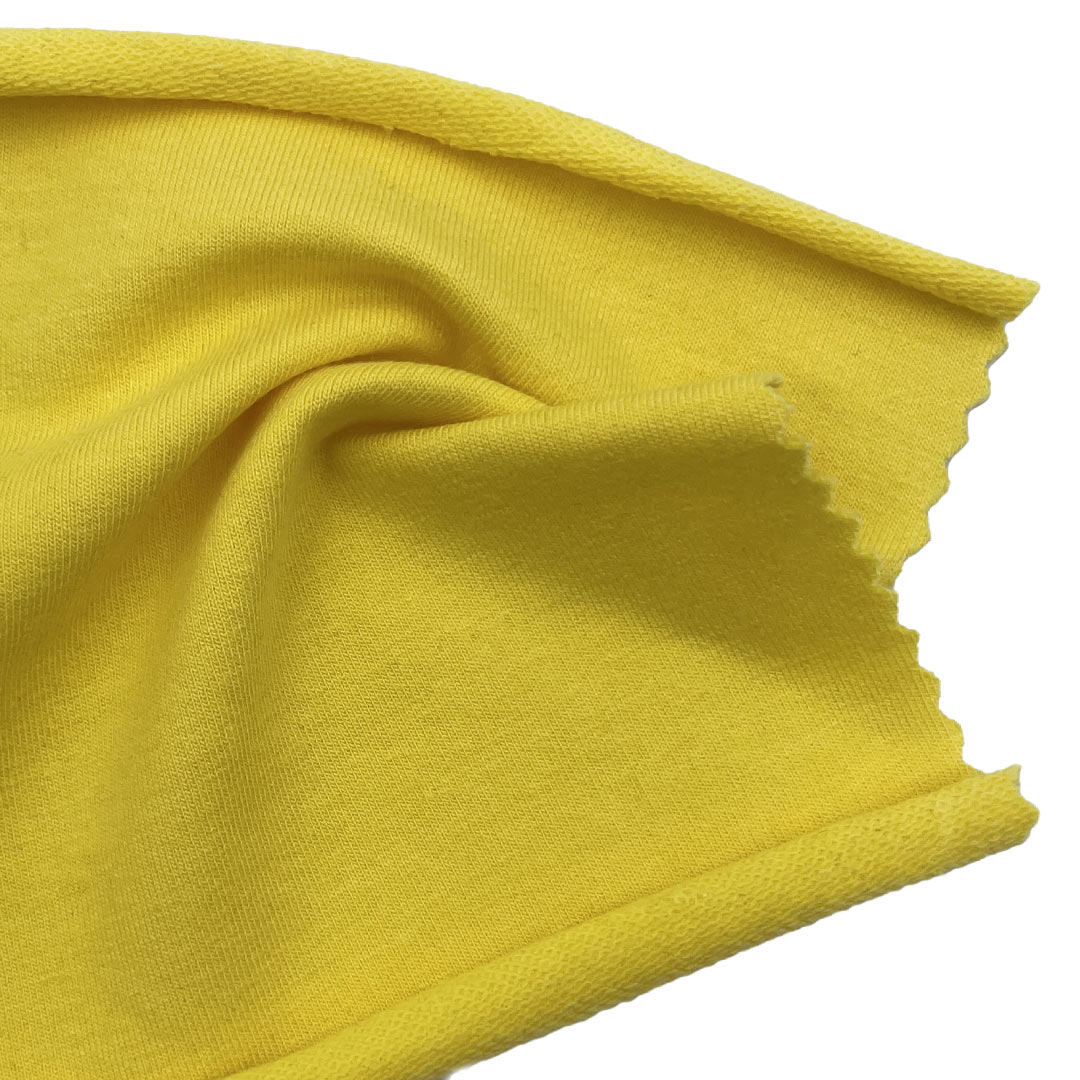 This 220gsm (7.76 oz) fabric blended with 81% cotton, 13% polyester, and 6% spandex is a French terry material known for its soft and smooth hand feel, making it ideal for dresses, sweatshirts, pants, shorts, and sportswear. The inner looped pile enhances warmth and moisture-wicking, while the outer surface is finely finished for a smooth, skin-friendly touch. Cotton offers natural softness and breathability, polyester improves durability and shape retention, and spandex provides four-way stretch for flexibility during movement and a comfortable fit in daily wear. The 220gsm weight balances lightness and functionality, allowing dresses to drape elegantly and sweatshirts and shorts to allow free movement. The fabric is breathable and quick-drying, suitable for various seasons and occasions, from casual sports to everyday outfits. Easy to care for, it is machine washable, abrasion-resistant, and maintains vibrant colors and texture over time. Whether for elegant dresses, comfortable sweatsuits, or stylish shorts, this French terry fabric perfectly combines comfort, functionality, and modern aesthetics.