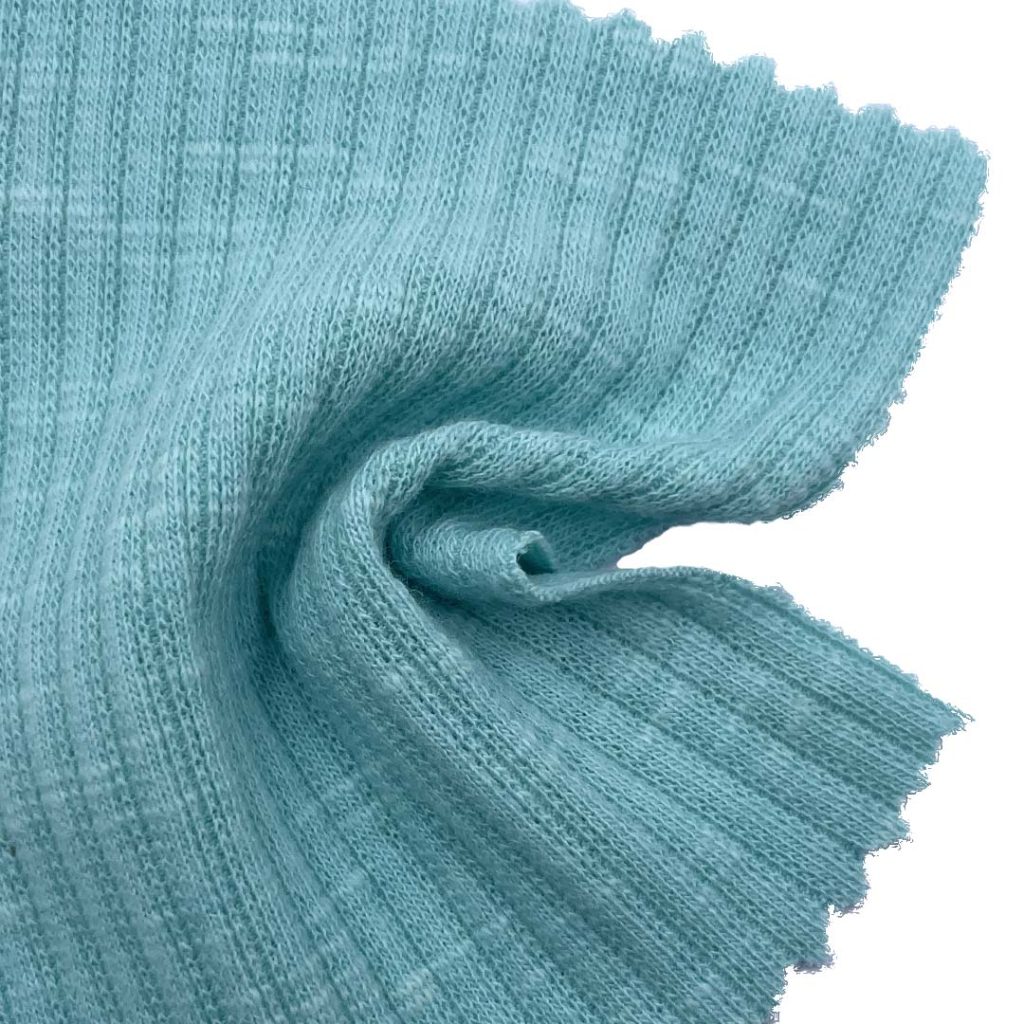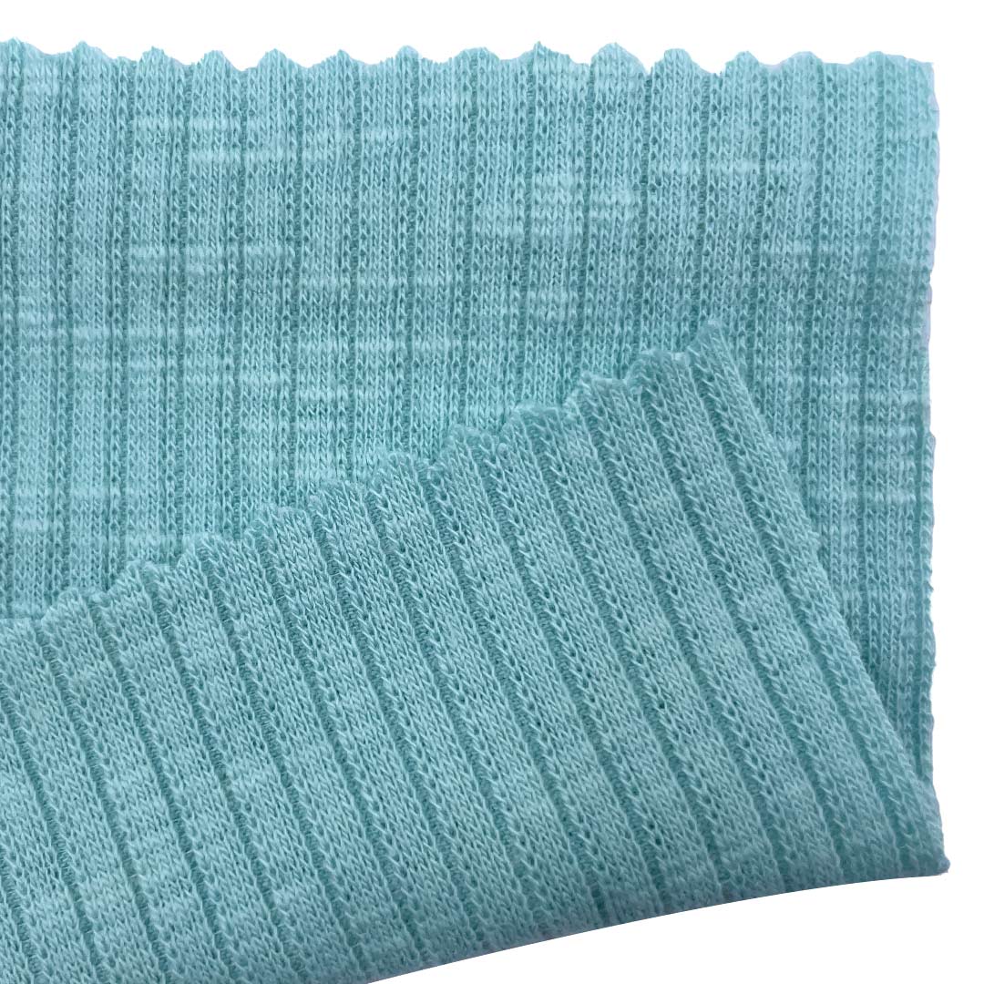 This 230gsm slub rib fabric, crafted from 95% Cotton and 5% Spandex, offers an exceptionally soft hand feel combined with a unique visual texture. The high cotton content provides superior breathability, moisture absorption, and natural comfort against the skin, while the integrated spandex delivers excellent elasticity and recovery, allowing the fabric to move with the body while maintaining its shape. The distinctive slub effect, characterized by irregular, subtle thick-and-thin variations in the yarn, creates an attractive, tactile surface that adds a touch of rustic elegance and depth to garments. This versatile fabric is perfectly suited for creating stylish dresses, comfortable sleepwear, and everyday T-shirts that require both comfort and visual interest. For care, we recommend machine washing in cold water, tumble drying on low heat, and avoiding bleach to preserve the fabric's softness, unique texture, and elastic properties over time. This fabric marries the comfort of cotton with stylish texture for distinctive everyday wear.