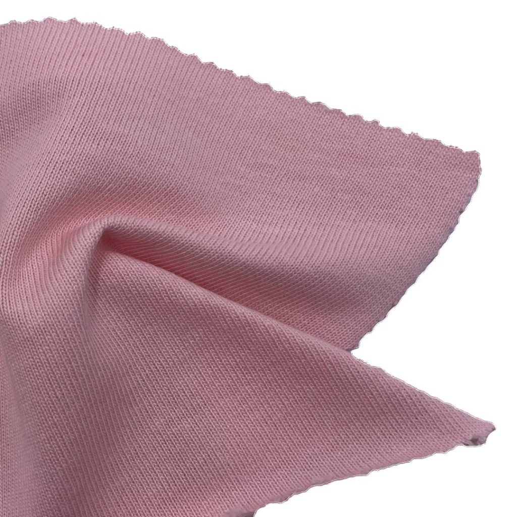 This 230gsm single jersey fabric features a plated fabric technique using 100% cotton, creating a unique material that combines smooth hand feel with structured properties. The innovative finishing process results in a surface that feels noticeably smooth to the touch while maintaining excellent shape retention and drape. The medium-weight construction provides optimal durability without compromising the softness and breathability inherent to cotton. Perfect for T-shirts and long sleeve shirts, this fabric offers the comfort of traditional cotton with enhanced structural integrity that keeps garments looking polished throughout wear. The balanced characteristics make it suitable for both casual and refined styles, offering versatility in design applications. Easy to care for and machine washable, this fabric maintains its smooth texture and structured quality over time.