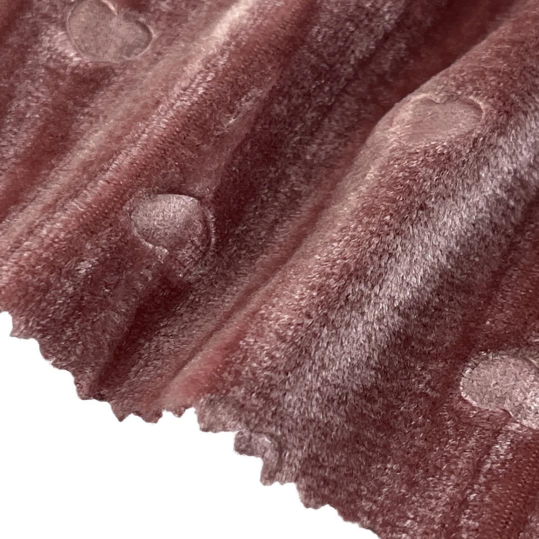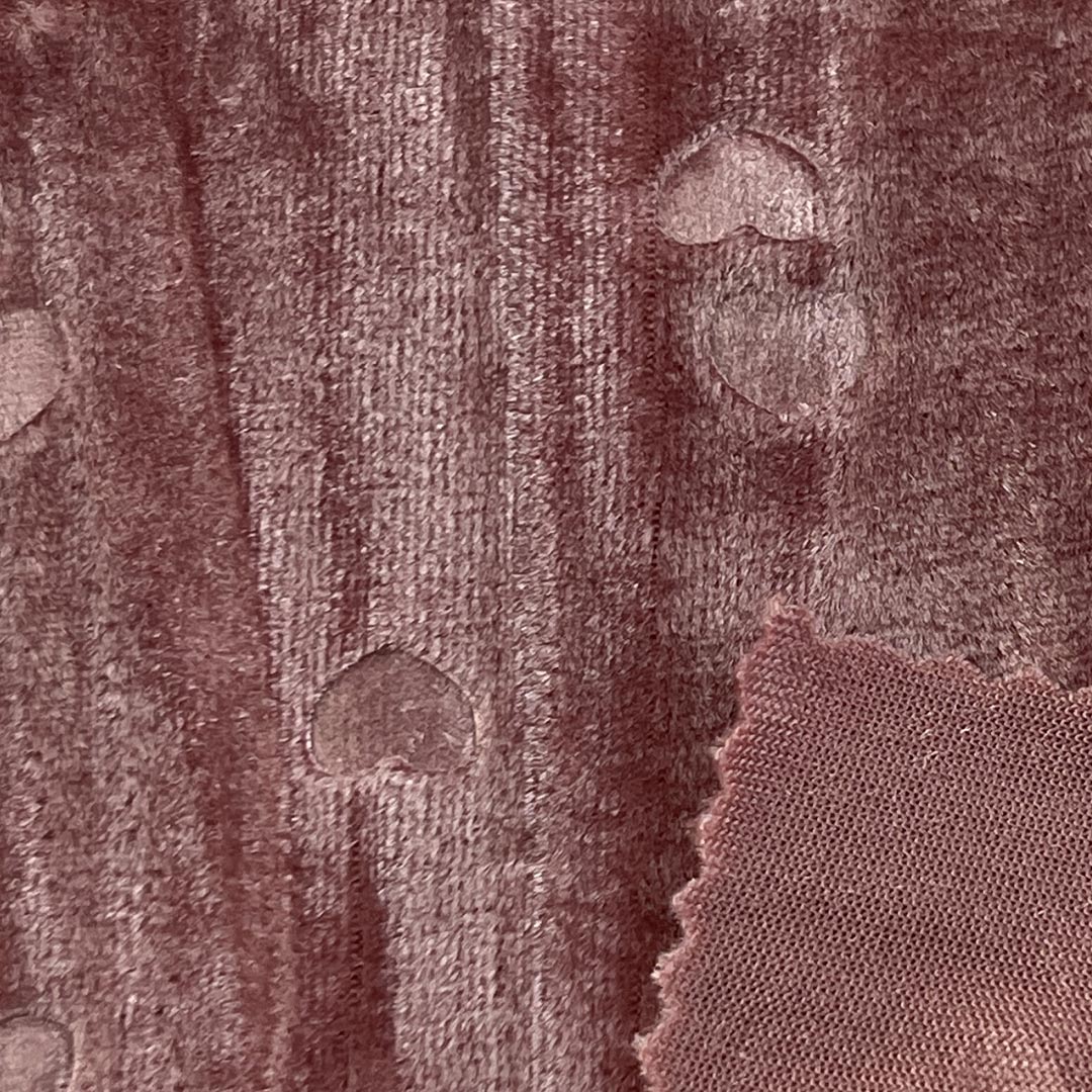 Weighing 230gsm (8.1oz), this refined embossed velvet fabric combines 95% polyester and 5% spandex to create a soft hand feel material suitable for both evening dresses and decorative cushions. The velvet construction provides a plush, dense pile with intricate embossed patterns that add visual texture and sophistication.